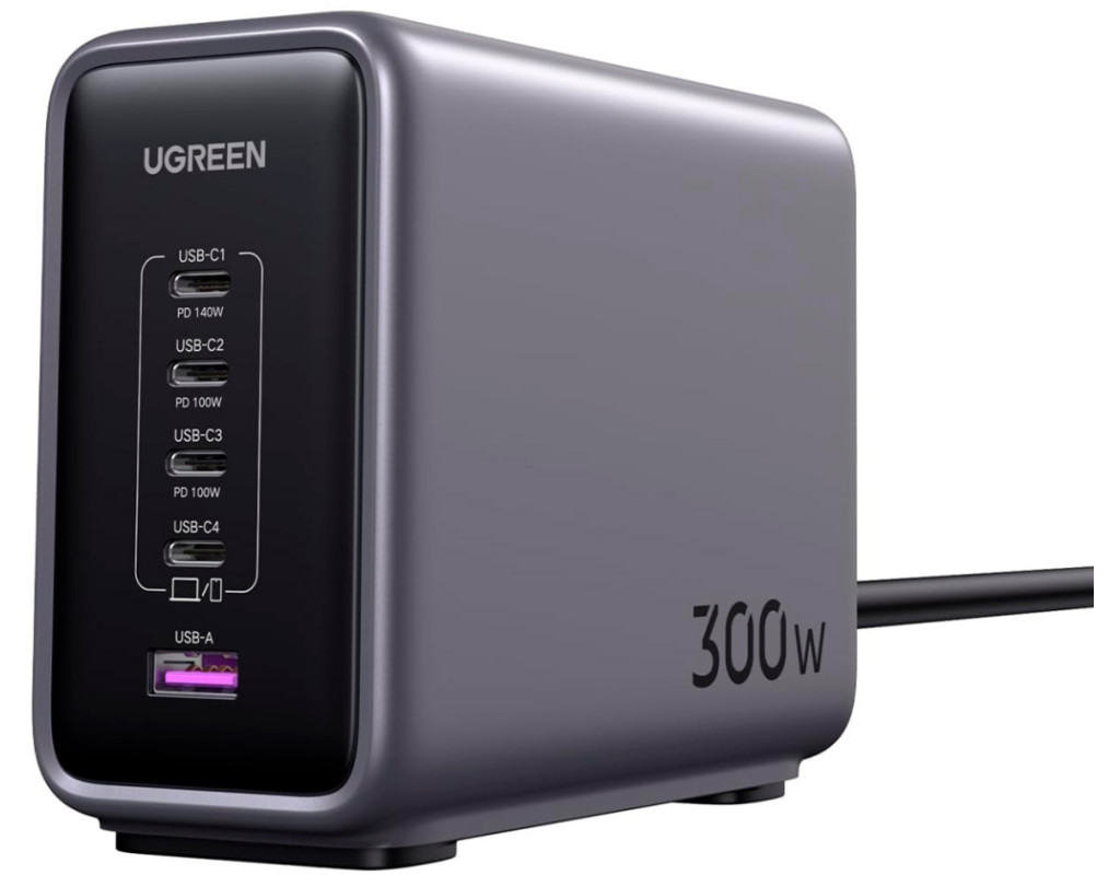 | Зарядний пристрій UGREEN 5xUSB 300W Nexode (5хUSB-C) CD333 (90903B) — це високотехнологічний адаптер, який стане незамінним інструментом для сучасного користувача. Підтримка передових стандартів зарядки, таких як Fast Charging та Power Delivery, дозволяє суттєво скоротити час зарядки ваших пристроїв, забезпечуючи максимальну ефективність для смартфона, планшета, ноутбука, TWS навушників та інших гаджетів. Завдяки використанню інноваційної технології GaN з нітридом галію, пристрій демонструє високу якість та надійність. Він забезпечує знижене енергоспоживання і менший рівень нагрівання, а компактний дизайн дозволяє зручно використовувати його навіть у обмежених просторових умовах. Інтелектуальний захист включає 5 ступенів, які ефективно оберігають ваші пристрої від перегріву, короткого замикання та перенавантажень, підвищуючи тим самим безпеку під час зарядки. Максимальна вихідна потужність до 300 Вт через його 4 порти USB Type-C та 1 порт USB Type-A дозволяє заряджати різні пристрої одночасно, при цьому один з портів USB-C підтримує до 140 Вт, інші до 100 Вт і 45 Вт, а USB-A до 22.5 Вт. Незалежно від того, чи це ваш домашній офіс чи спальня, ви можете заряджати до п'яти пристроїв одночасно, отримуючи відмінну продуктивність і стиль в одному флаконі. Обираючи зарядний пристрій UGREEN, ви інвестуєте у якість, інновації та бездоганний захист для своїх електронних гаджетів. |