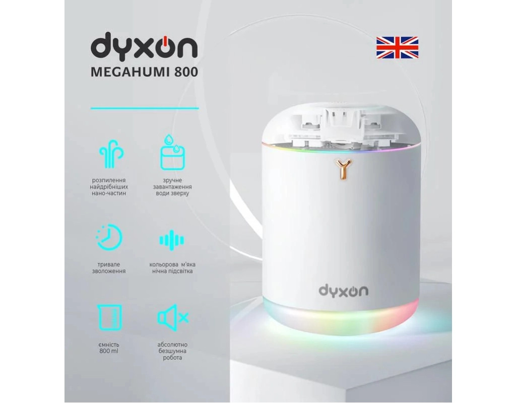 | DYXON MEGAHUMI 800, це компактний та зручний ультразвуковий зволожувач повітря, який чудово підходить для ефективного зволоження, створюючи необхідний мікроклімат приміщення, робочого місця або салону автомобіля. Основні особливості Зволожувача повітря DYXON MEGAHUMI 800: