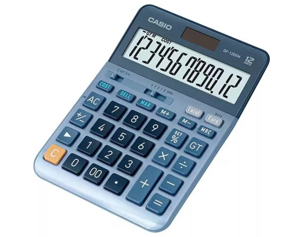 Калькулятор Casio DF-120EM-W-EP, блакитний (CALC-CAS-DF-120EM-W)