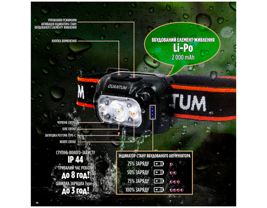 | Ліхтар Quantum Finder LED з Type-C (QM-FL4040) — першокласний вибір для тих, хто прагне отримати від освітлювального приладу максимум якості та функціональності. Цей налобний ліхтар поєднує сучасні технології та стильний дизайн, що робить його незамінним для професійних і аматорських завдань. Ліхтар оснащено потужним LED світлодіодом, здатним забезпечити яскравість 600 люмен. Це дозволяє легко освітлювати об'єкти на віддалі до 100 метрів. Регульовані режими інтенсивності світла допоможуть пристосувати освітлення відповідно до умов, що важливо як у роботі, так і в повсякденному житті. Особливістю моделі є функція повороту і нахилу, що дозволяє налаштувати ліхтар під будь-яким кутом для оптимального освітлення. Високий рівень захисту робить Quantum Finder LED відповідним для різноманітних умов експлуатації. Завдяки вологонепроникності та ударостійкості, ліхтар може витримувати екстремальні умови використання без втрати функціональності. Міцний корпус, виготовлений з поєднання пластику та металу, забезпечує додатковий захист від механічних пошкоджень. Одним із ключових моментів є джерело живлення — вбудований акумулятор, що дозволяє працювати тривалий час без втрати потужності. Ліхтар підтримує швидку зарядку за допомогою USB Type-C інтерфейсу, що особливо зручно для людей, які завжди в русі або під час подорожей. Компактний та легкий, ліхтар важить лише 94 грами і має довжину 63 мм. Це робить його зручним у використанні, не створюючи зайвого навантаження. Регульований ремінець дозволяє надійно фіксувати ліхтар на голові, залишаючи ваші руки вільними. Така ергономіка є важливою під час робіт у вузьких або складних умовах. Стильний чорний колір корпусу надає естетичності та відчуття професійного підходу до функціональності. Quantum Finder LED чудово пасуватиме як до спортивної, так і до робочої обстановки, підкреслюючи ваш витончений смак. Отримуючи Quantum Finder LED, ви обираєте не просто освітлювальний інструмент, а надійного партнера у всіх ваших починаннях. Від гірських походів до нічних ремонтних робіт, цей ліхтар завжди поруч, готовий забезпечити комфорт та безпеку у будь-якій ситуації. Інвестуйте у високу якість та передові технології, вибираючи Quantum Finder LED — ваш ключ до яскравого майбутнього. |