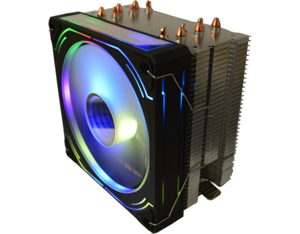 Для процесорів - INTEL, AMD, сокет - AM4, AM5, 1150, 1151, 1155, 1156, 1200, 1700, матеріал радіатора - алюміній, діаметр вентиляторів - 120 мм, Максимальна частота обертів - 1700 об/хв, рівень шуму - 32 дБ, роз'єми живлення - 4-pin PWM, 4-pin, Підсвічування - RGB, 6 теплових труб