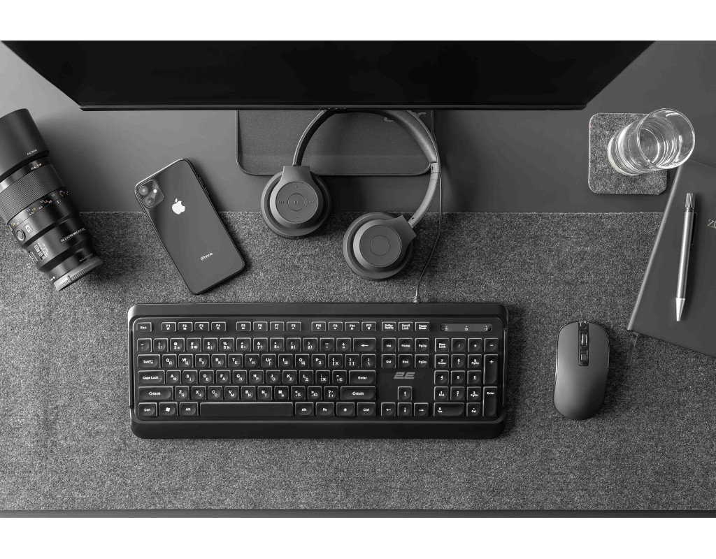 Клавіатура ідеально підходить для домашнього використання, адже з нею легко працювати вдень і вночі завдяки підсвітці клавіш білим м'яким кольором. 12 мультимедійних клавіш додадуть комфорту під час переглядів фільмів або прослуховування музики. А оригінальна й ергономічна форма клавіш додасть зручності за тривалого використання.