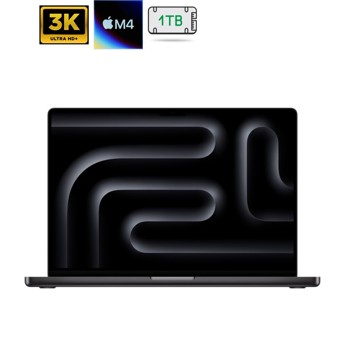 16.2", 3456x2234 (Liquid Retina XDR), Liquid Retina XDR, Apple M4 Max, 36 ГБ, SSD - 1 ТБ, Apple M4 Max Graphics (32-core GPU), macOS Sequoia, 100 Втг, підсвічування клавіатури, сканер відбитків пальців, 2.15 кг, чорний