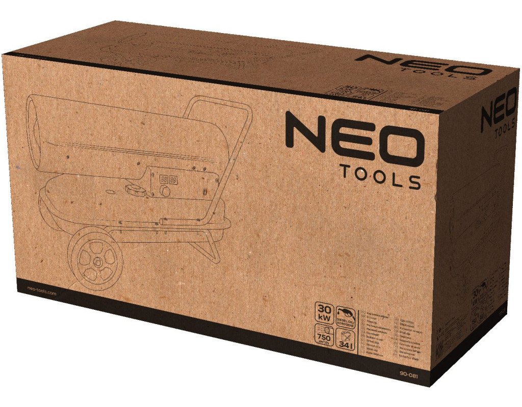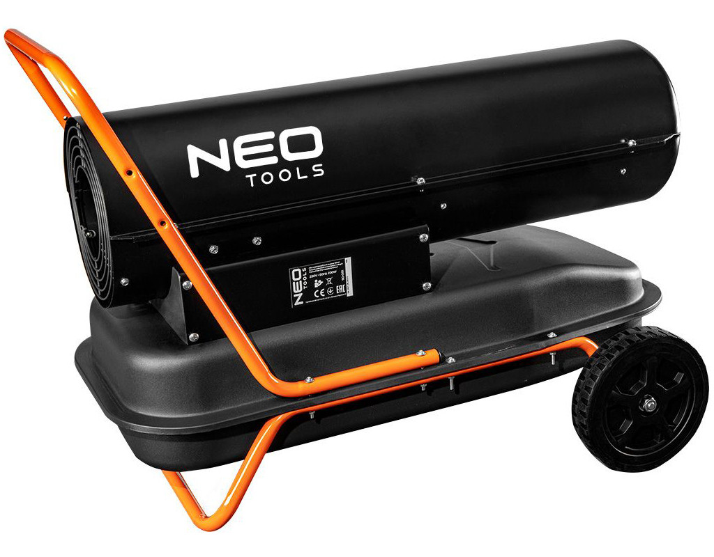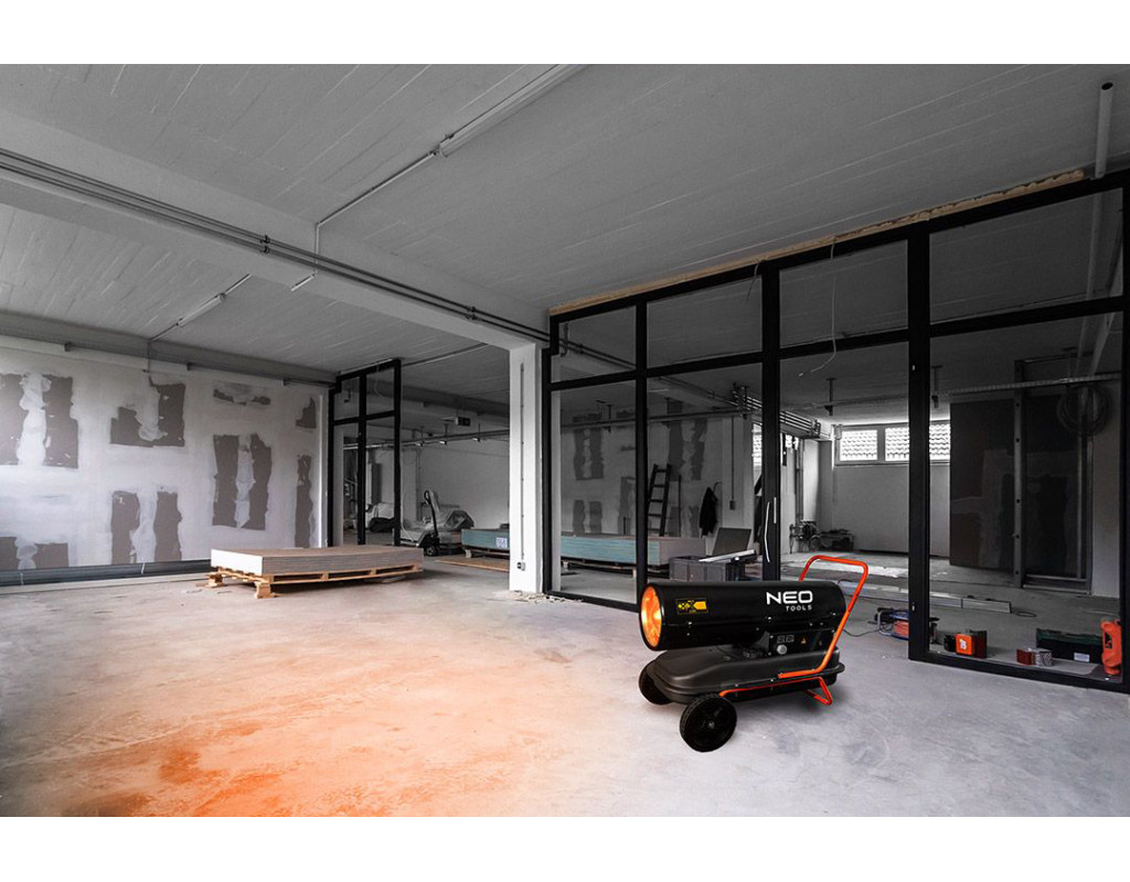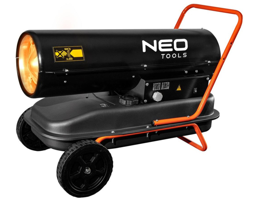 | Дизельний обігрівач призначений для обігріву підлог цехів, складських приміщень, будівельних майданчиків тощо. Конструкція пристрою з великими передніми колесами дозволяє легко переміщатися. Паливом для обігріву може бути гас або дизельне паливо. Камера згоряння виготовлена з нержавіючої сталі та має повітряне охолодження. Для підвищення безпеки передбачено датчик полум'я. Якщо паливо закінчиться, обігрівач зупиниться. |