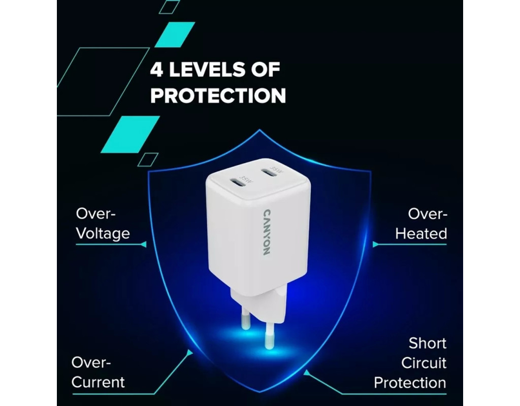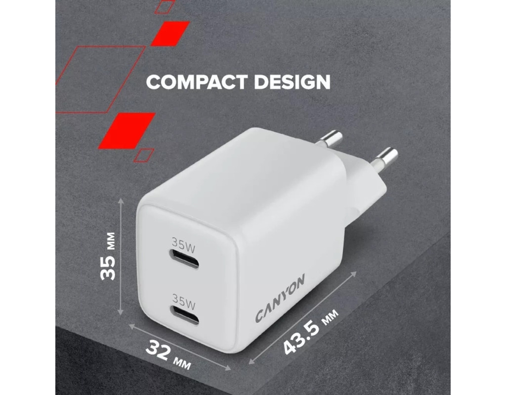 | Зарядний пристрій Canyon CU35CC GaN 35W 2xPD EU White (CNS-CUW35CC) — це втілення передових технологій, що робить його затребуваним на сучасному ринку. Завдяки потужності у 35 Вт, він здатний швидко та ефективно заряджати широкий спектр пристроїв, від смартфонів і планшетів до фітнес-браслетів і смарт-годинників. Використання галлій-нітридних (GaN) технологій робить цей адаптер не лише ефективним, а й компактним; його мінімалістичний дизайн відмінно вписується у будь-які інтер'єри та зручний для перенесення. Технологія Power Delivery гарантує максимальний вихідний струм до 3 А, що забезпечує блискавичну зарядку. Два порти USB Type-C дають можливість одночасно заряджати кілька пристроїв, що особливо зручно для тих, хто завжди в русі. Наявність програмованого джерела живлення PPS адаптує процес зарядки під конкретні потреби ваших гаджетів, забезпечуючи індивідуальний підхід до кожного. Безпека та екологічність — це основні пріоритети Canyon. Пристрій має такі функції захисту, як захист від перенапруги, перегріву та перевантаження, що подовжує термін служби як адаптера, так і ваших пристроїв. Відповідність екологічним стандартам підтверджують сертифікати CE, RoHS та ERP. Невеликий розмір та адаптивність для роботи з розетками по всьому світу роблять його ідеальним вибором для подорожей та бізнес-поїздок. Забезпечте собі безперебійну продуктивність і надійність у будь-якому місці з Canyon CU35CC, залишаючись на зв'язку завжди і всюди! |