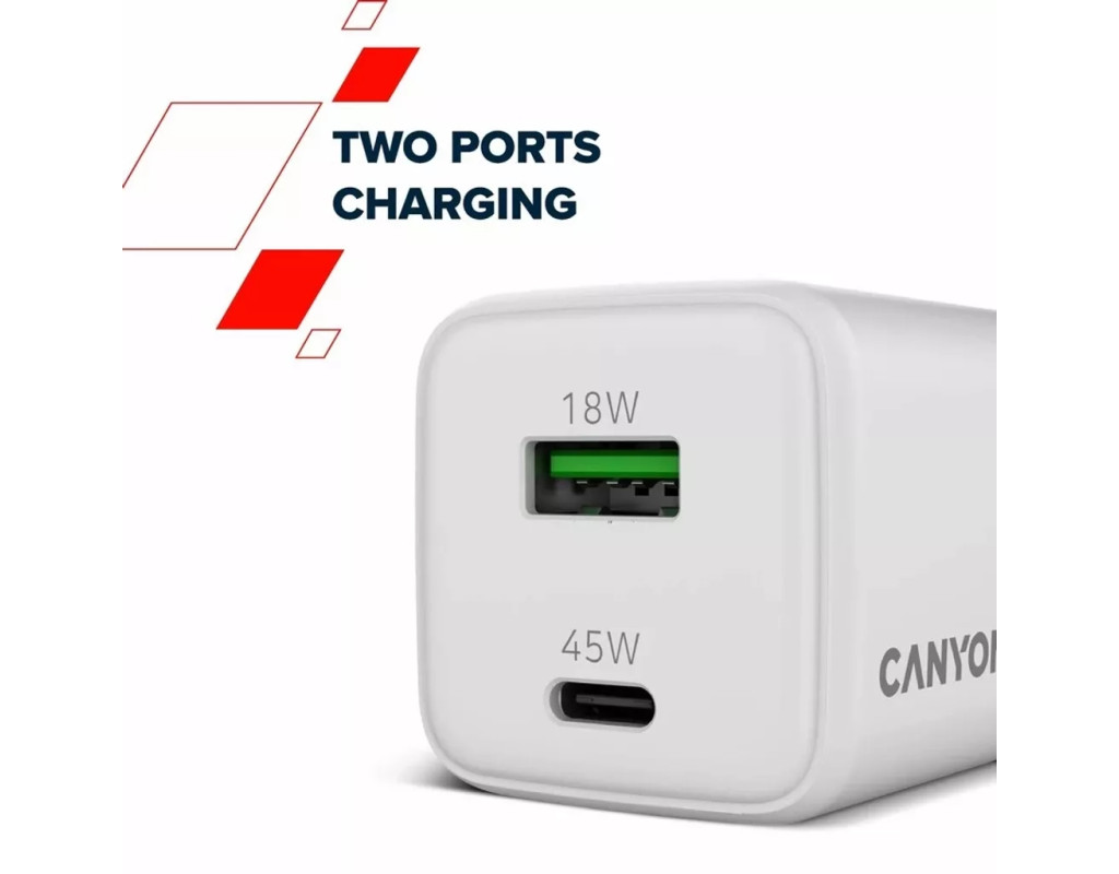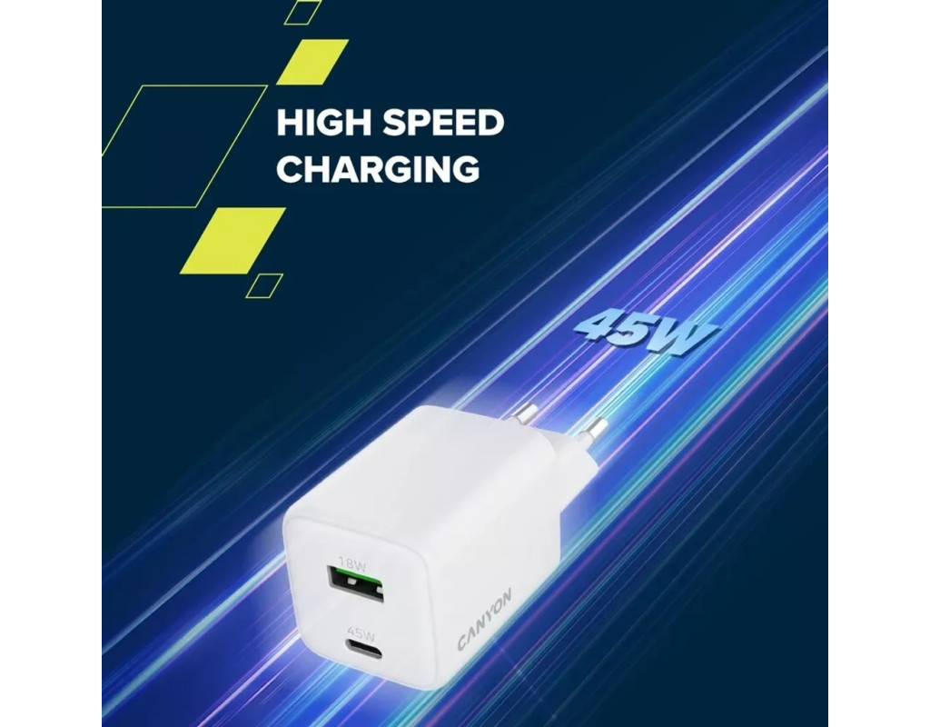 | Зарядний пристрій Canyon CU45AC GaN 45W 1xPD 1xQC EU White (CNS-CUW45AC) є зразком інноваційних рішень у світі технологій. Завдяки використанню передової технології GaN (галій нітрид), цей адаптер став легшим і компактнішим, не втрачаючи своєї потужності. Це відзначається чудовою тепловіддачею і можливістю зменшення фізичних розмірів, що робить його незамінним супутником у подорожах. Canyon CU45AC надає можливість швидкої зарядки завдяки підтримці Power Delivery і Quick Charge 4.0. З максимальною вихідною потужністю у 45 Вт цей адаптер заряджатиме ваші гаджети максимально швидко й ефективно, забезпечуючи вихідний струм до 3 А. Це дозволяє смарт-годинникам, смартфонам, планшетам і фітнес-браслетам завжди залишатися зарядженими та готовими до використання. Оснащений двома портами для зарядки — 1 x USB Type-C і 1 x USB — цей адаптер відзначається універсальністю. Тепер ви можете одночасно заряджати два пристрої, не турбуючись про втрату швидкості та стабільності. Така функціональність дозволяє забезпечити пристрої енергією без затримок, що особливо важливо у щоденному житті, насиченому подіями. Зарядний пристрій Canyon CU45AC стане вашим надійним союзником, підтримуючи ваші електронні пристрої на високому рівні енергії. Якість, зручність і висока швидкість зарядки без компромісів — це те, чим відзначається продукція Canyon. Залишайтеся на крок попереду з Canyon, і ваші пристрої завжди будуть готові до нових викликів. |