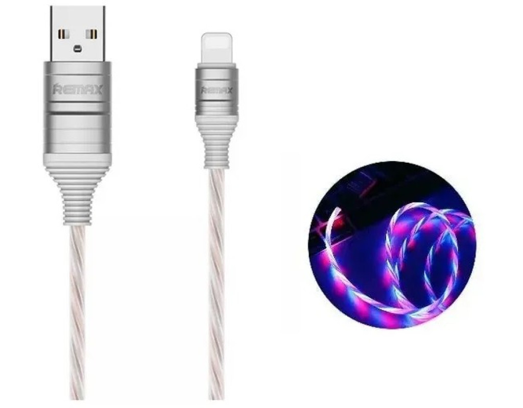 Кабель Remax RC-130i EL - є високоякісним кабелем, який дозволить вам з’єднувати лінійку гаджетів, оснащених роз’ємом Lightning з безліччю аксесуарів. Кабель Remax RC-130i світиться і має витий дріт з яскравими світлодіодами всередині. При підключенні яскрава світлодіодна система автоматично загоряється і дає неймовірно красиві і вражаючі миготливі ефекти.Завдяки йому, ви зможете провести синхронізацію, виконати зарядку акумулятора або підключити кабель до блоку живлення для зарядки від електромережі.