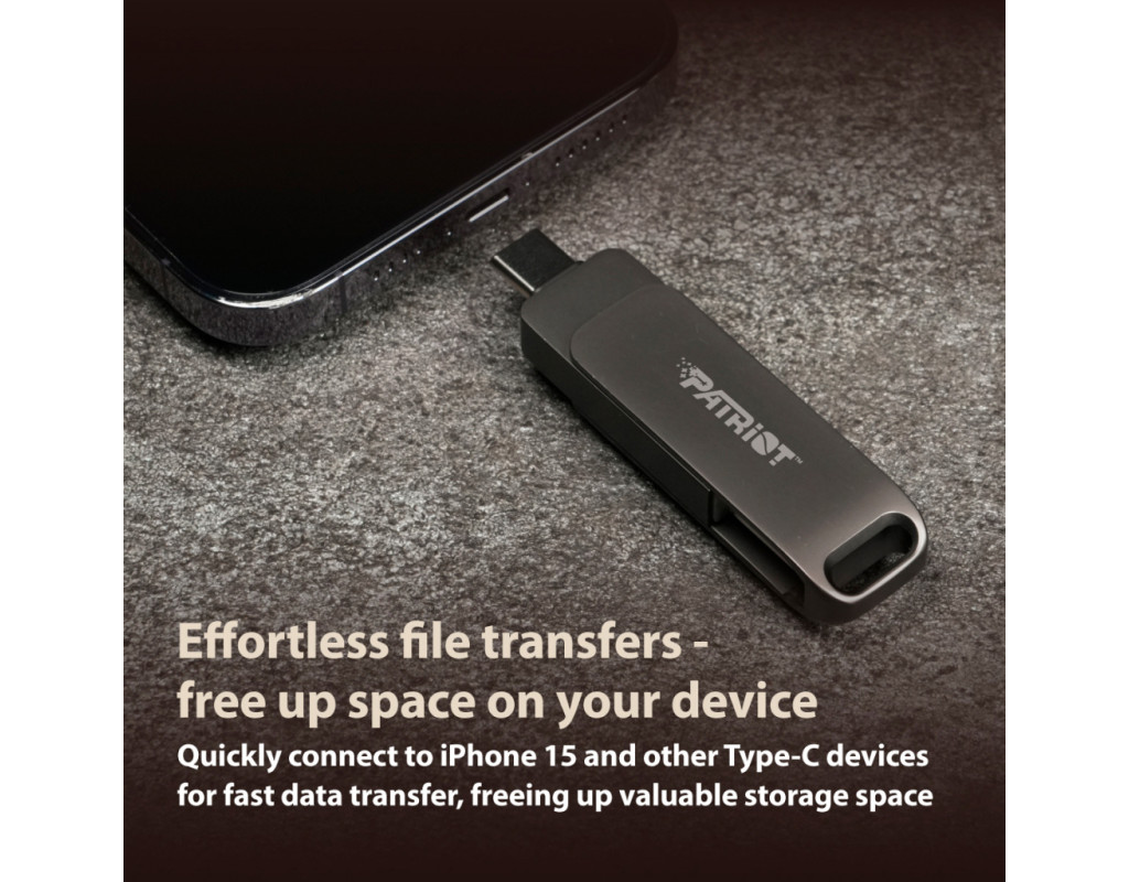Флеш-накопичувач Rage R550 USB 3.2 це високошвидкісний USB-накопичувач з подвійним інтерфейсом USB Type-C і USB A. USB Type-C робить його універсальним роз'ємом, який можна використовувати для різних цілей, зокрема для передачі даних, відео та аудіо на більш високих швидкостях, ніж звичайний USB. Зі швидкістю читання до 100 МБ/с завантаження та передача файлів відбуваються швидше та ефективніше, ніж будь-коли. Щоб зберегти файли в безпеці, роз'єми USB захищено, а сам накопичувач оснащено отвором для ключів, який можна повісити на кільце для ключів, зберігаючи його в безпеці та портативності. Rage 550 USB - це флеш-накопичувач подвійного призначення, який дозволяє легко переносити файли між смартфонами, планшетами та комп'ютерами з інтерфейсом USB Type-C, а також Mac і комп'ютерами з інтерфейсом USB Type-A. Він також дозволяє переносити всі записи з iPhone 15, сумісних з iPhone і iPad, на USB-пристрій, забезпечуючи максимальний обсяг пам'яті вашого пристрою. Особливості: