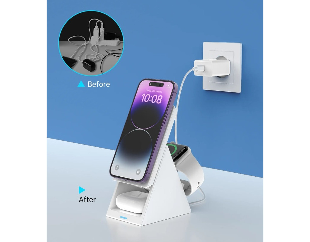 | Choetech T600 15W 3в1 індукційна зарядна станція - білий