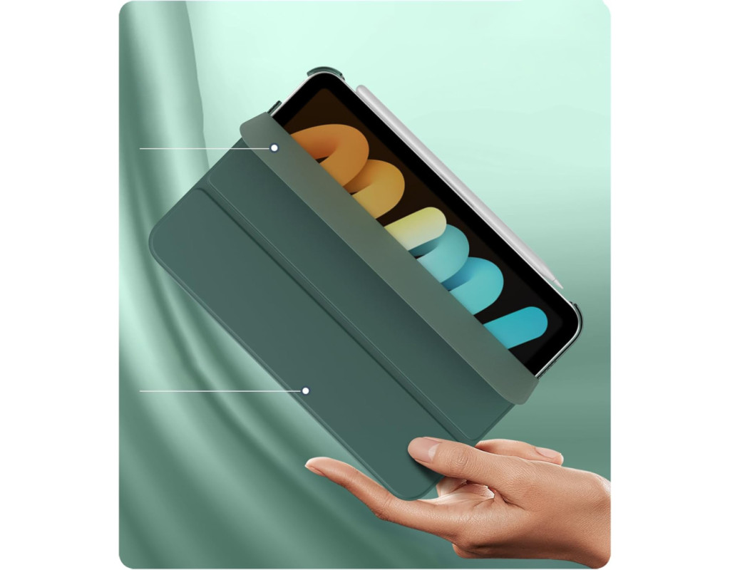 Тип - обкладинка, Сумісність з моделями - Apple iPad Mini 7 2024, Спосіб кріплення - обкладинка, спосіб закриття - магніт, Матеріал - полікарбонат, термополиуретан, темно-зелений