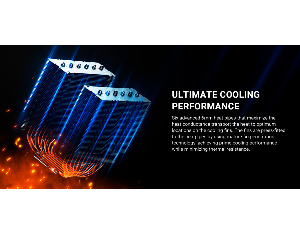 ID-COOLING Frozn A620 Pro SE — це інноваційний двобаштовий повітряний кулер, створений для ефективного охолодження потужних процесорів, забезпечуючи баланс між продуктивністю, тихою роботою та стильним дизайном. Кулер оснащений шістьма вдосконаленими 6-міліметровими тепловими трубками, які забезпечують максимальну теплопровідність, передаючи тепло в оптимальні місця на алюмінієвих ребрах. Використання технології проникнення ребер до трубок дозволяє мінімізувати тепловий опір і досягти стабільної роботи навіть під великим навантаженням. Спеціальна конструкція мікрохвильових ребер збільшує площу для розсіювання тепла, що додатково підвищує ефективність охолодження. Він оснащений 120-мм вентилятором із ШІМ-керуванням, який забезпечує оптимальний баланс між продуктивністю та рівнем шуму. Вентилятор працює з мінімальним рівнем шуму 27.2 дБ навіть на максимальних обертах. Завдяки гідравлічному підшипнику і 5 спеціально розробленим лопатям, вентилятор створює потужний повітряний потік, гарантуючи стабільне охолодження. Мідна основа кулера припаяна до теплових трубок, що забезпечує чудовий тепловий інтерфейс, стійкий до тривалого термоциклування. Завдяки комбінації порошкових і пазових теплових трубок, кулер ефективно працює в будь-якому положенні корпусу — вертикальному чи горизонтальному, демонструючи високу продуктивність навіть для процесорів з високим TDP. ID-COOLING Frozn A620 Pro SE має стильний вигляд завдяки верхній пластиковій кришці, матовій наклейці з логотипом «FROZN» і натуральній алюмінієвій поверхні. Його універсальний дизайн ідеально інтегрується у більшість сучасних комп’ютерних корпусів, зберігаючи мінімалістичну естетику. |