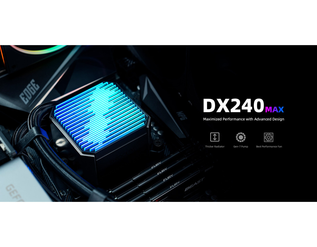 ID-COOLING DX240 MAX — ефективна система рідинного охолодження, призначена для відведення тепла від процесора та охолодження інших компонентів материнської плати. Оснащена великим радіатором з двома вентиляторами, що забезпечує чудову ефективність охолодження та низький рівень шуму. СРО має потовщені трубки високої щільності, зовнішня сторона яких обгорнута багатожильним міцним нейлоном. Вони створені, щоб протистояти розтягуванню, згинанню або пошкодженню трубок для захисту від протікання та випаровування рідини, що охолоджує. Має міцну раму та лопаті вентилятора, що спричиняє кращу продуктивність та подовжує термін служби компонентів. Вбудовані світлодіоди RGB на помпі випромінюють чарівні кольори та мають різні світлові ефекти, тому допоможуть оживити вашу систему та додати збірці яскравого акценту. |