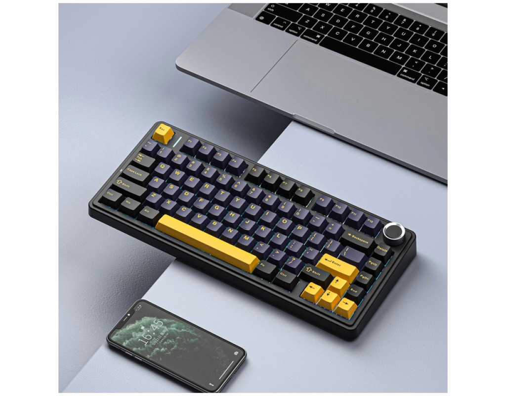 Механічна ігрова клавіатура AULA F75 підтримує варіанти підключення BT 5.0 / 2.4 ГГц / Type-C, які, за потреби, можна легко перемикати між собою за допомогою комбінованої клавіші FN+ або спеціалізованого перемикача на панелі пристрою. Ця ігрова клавіатура у режимі Bluetooth може підключати до 3 пристроїв одночасно, таких як: ПК, ноутбук, планшет, мобільний телефон, PS, XBOX і сумісна з операційними системами Mac/Win/iOS/Android.