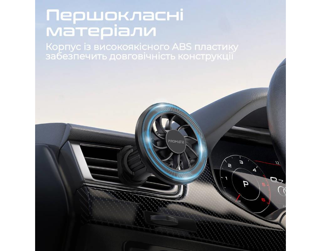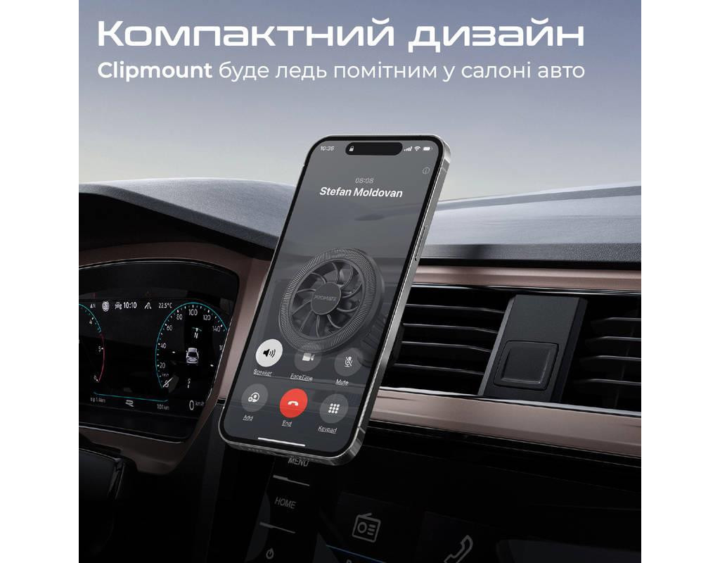 | Promate Clipmount - автотримач із передовим дизайном у вигляді магнітного кільця. Надійна фіксація, універсальне кріплення та все це в компактному корпусі.