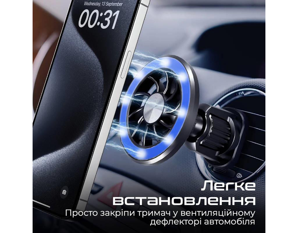 Особливості: Магнітний тип кріплення: Встановлюй смартфон на тримач, знімай його та змінюй вертикальне положення на горизонтальне однією рукою. Три варіанти використання: iPhone 12 і вище без чохла, iPhone з чохлом MagSafe або будь-який смартфон при використанні комплектних магнітів. Вбудований 3D шарнір: Дозволяє обертати платформу на 360° для вибору оптимального положення та кута нахилу. Надійна фіксація: Неодимові магніти N52 легко утримають телефон навіть на дорогах з ямами. Першокласні матеріали: Корпус із високоякісного ABS пластику забезпечить довговічність конструкції. Компактний дизайн: Ідеальний варіант для тих, хто не любить довгі кронштейни та присоски. Clipmount буде ледь помітним у салоні авто. Легкe встановлення: Ніяких інструментів, просто закріпи тримач у вентиляційному дефлекторі автомобіля. Універсальна сумісність: Завдяки металевому кріпленню утримає телефон будь-якого розміру. |