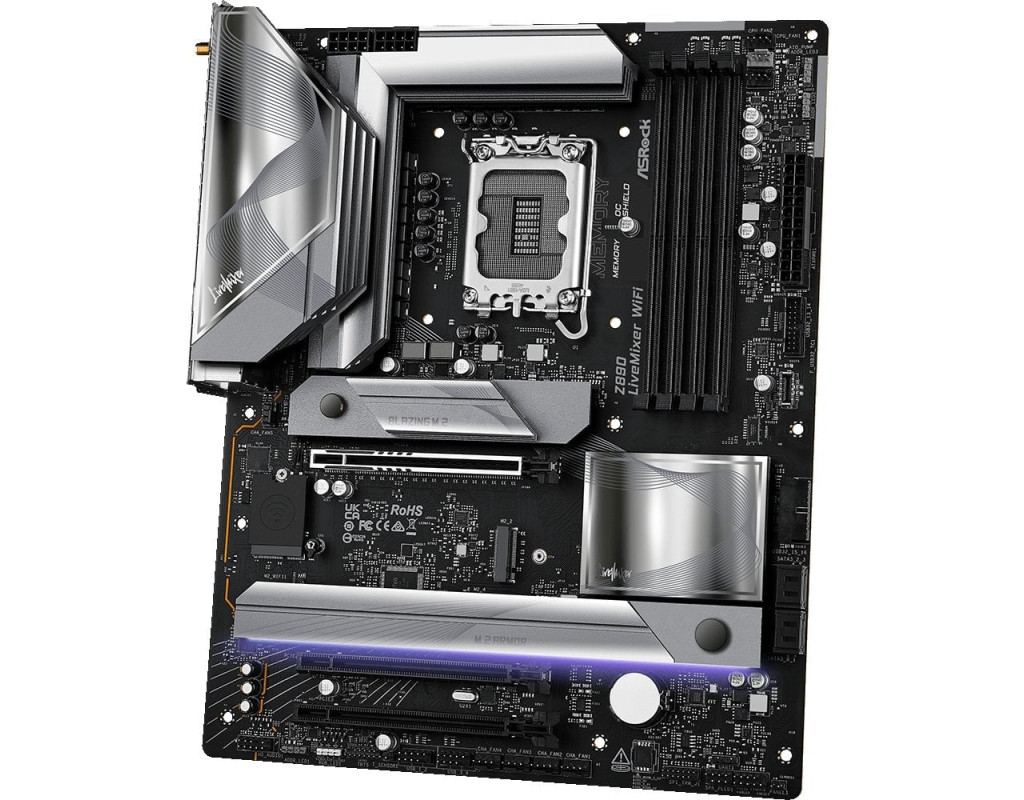 Ексклюзивні конденсатори 20K на 1000 мкФ. Покращені конденсатори "20K Black" мають термін служби до 20 тисяч годин, а також і підвищену ємність від 560 до 1000 мкФ 20+1+2+1+1-фазна схема живлення. Має довговічні компоненти і рівномірно подає живлення CPU. Крім того, вирізняється неперевершеними можливостями для оверклокінгу з найменшою температурою для просунутих геймерів Роз’єм живлення високої щільності. Розгін CPU вимагає високих значень струму, і роз’єм ASRock здатний витримувати підвищене навантаження на 8- і 24-контактних роз’ємах. Це підвищує стабільність системи та знижує ризик під час посиленого розгону компонентів Мідні шари друкованої плати. Внутрішні мідні шари забезпечують стабільність сигнальних трас і профілів потужності! А також забезпечують знижену температуру і підвищену енергоефективність при оверклокінгу! Швидкісне рішення M.2. Blazing M.2 підтримує новітній стандарт PCI Express 5.0, що забезпечує вдвічі більшу пропускну здатність порівняно з попереднім поколінням, а завдяки приголомшливій швидкості передачі даних 128 ГБ/с він готовий розкрити весь потенціал майбутніх надшвидких твердотільних накопичувачів Підтримка DDR5 XMP і EXPO DDR5. Дотримуючись концепції "стабільності та надійності", компанія ASRock не економить на базових компонентах. Ці материнські плати виготовлені з високоякісних матеріалів, що дає змогу розганяти пам’ять DDR5 за готовими профілями розгону. Переконайтеся, що ваші модулі пам’яті підтримують профілі Intel XMP/AMD EXPO і розганяйте пам’ять без зайвих зусиль і ризиків Екран "Memory OC Shield". ASRock "Екран "Memory OC Shield"" - це патентована функція для зниження електромагнітних перешкод (EMI), які можуть впливати на розгін пам’яті. Екрануючи модулі пам’яті від перешкод, "Екран "Memory OC Shield"" покращує стабільність і надійність під час високошвидкісних операцій, даючи користувачам можливість використовувати свою систему на максимум Підтримка вентиляторів PWM/DC. Материнська плата автоматично визначає тип вентиляторів для точного налаштування швидкості обертання і зниження рівня шуму Укрупнений радіатор M.2. Надвеликий радіатор M.2 зі сплаву алюмінію не потребує інструментів і дає змогу легко та без зусиль встановлювати накопичувачі M.2 SSD Алюмінієвий радіатор. Зустрічайте нові алюмінієві радіатори! Для ефективного розсіювання тепла потрібні хороші радіатори, що важливо для ресурсоємних ігор і застосунків. Покращені радіатори на материнській платі забезпечують швидке відведення тепла від компонентів, що є гарантією стабільної роботи комп’ютера Підтримка вентиляторів PWM/DC. Материнська плата автоматично визначає тип вентиляторів для точного налаштування швидкості обертання і зниження рівня шуму Покращена підтримка VR. Wi-Fi 7 забезпечує високу пропускну здатність, низькі затримки і багатоканальність. Все це забезпечує плавність роботи інтерактивних пристроїв VR/AR без зайвих кабелів Wi-Fi 7 802.11be. Новітня технологія WiFi 7 забезпечує екстремально швидке під’єднання до Інтернету з низькими затримками і високою пропускною здатністю. Нова технологія WiFi 7(802.11be) прискорює роботу хмарних ігор, потокове відео 8К і відео-конференції Thunderbolt 4 Type-C. Технологія Thunderbolt 4 забезпечує підвищену швидкість і сумісність найпросунутішим роз’ємам USB Type-C, пропонуючи простоту під’єднань і рівень передавання даних до 40 Гбіт/с, під’єднання моніторів, пристроїв Thunderbolt і USB п