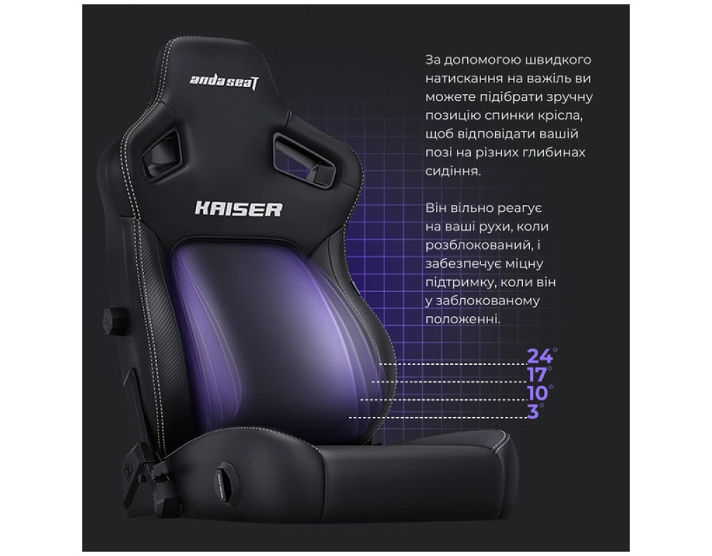 | Крісло ігрове Anda Seat Kaiser 4 PVC Size L Violet (AD12YDDC-L-20-V-PV/C) – це чудове поєднання стилю, комфорту та технологій, створене для забезпечення максимального задоволення під час гри та роботи за комп'ютером. Його рама виготовлена з міцного алюмінію, що забезпечує неймовірну легкість та довговічність конструкції. Це крісло витримає навіть найінтенсивніші ігрові баталії, зберігаючи стабільність і надійність у будь-якій ситуації. Особлива увага приділяється покриттю з високоякісної штучної шкіри, яке не тільки стійке до зношування, але й легко очищується, зберігаючи свій ідеальний вигляд протягом тривалого часу. Серед особливих переваг Anda Seat Kaiser 4 – це 5D підлокітники, що дозволяють налаштувати їх у залежності від ваших персональних вподобань, забезпечуючи максимальний комфорт під час довготривалих сеансів за столом. Вони дозволяють точно підігнати положення для рук, зменшуючи напругу в плечах та руках. Крісло обладнане механізмом Multi-Functional Tilt, який дозволяє регулювати кут нахилу до 135°. Це особливо корисно для тих моментів, коли ви хочете трохи відпочити, перемкнутися або просто знайти своє ідеальне робоче положення. Ще однією унікальною рисою є магнітна подушка для голови з піни, що запам'ятовує форму, забезпечуючи додаткову підтримку та комфорт для вашої шиї. Естетичне оформлення в фіолетовому кольорі робить це крісло вишуканим атрибутом будь-якого інтер'єру, надаючи йому нотку сучасності та стилю. Висока спинка, заввишки 134 см, забезпечує повноцінну підтримку тіла, а регульоване по висоті сидіння (від 46 до 52 см) дозволяє з легкістю налаштувати крісло саме під ваш зріст. Конструкція на п'яти ніжках з прогумованими роликами дозволяє вільно пересуватися по підлозі, захищаючи її від подряпин. Максимальна вантажопідйомність у 120 кг робить це крісло доступним для широкого спектру користувачів, включаючи тих, чиї параметри не перевищують 180 см у зрості. Anda Seat Kaiser 4 – це не просто крісло для геймерів, це справжній ергономічний трон, розроблений для тих, хто проводить багато годин за комп'ютером. Поєднання передового дизайну з високоякісними матеріалами робить його стильним та надзвичайно функціональним доповненням до будь-якого простору. Обирайте Anda Seat Kaiser 4, щоб насолоджуватися незрівнянним комфортом та підтримкою протягом усього вашого дня! |