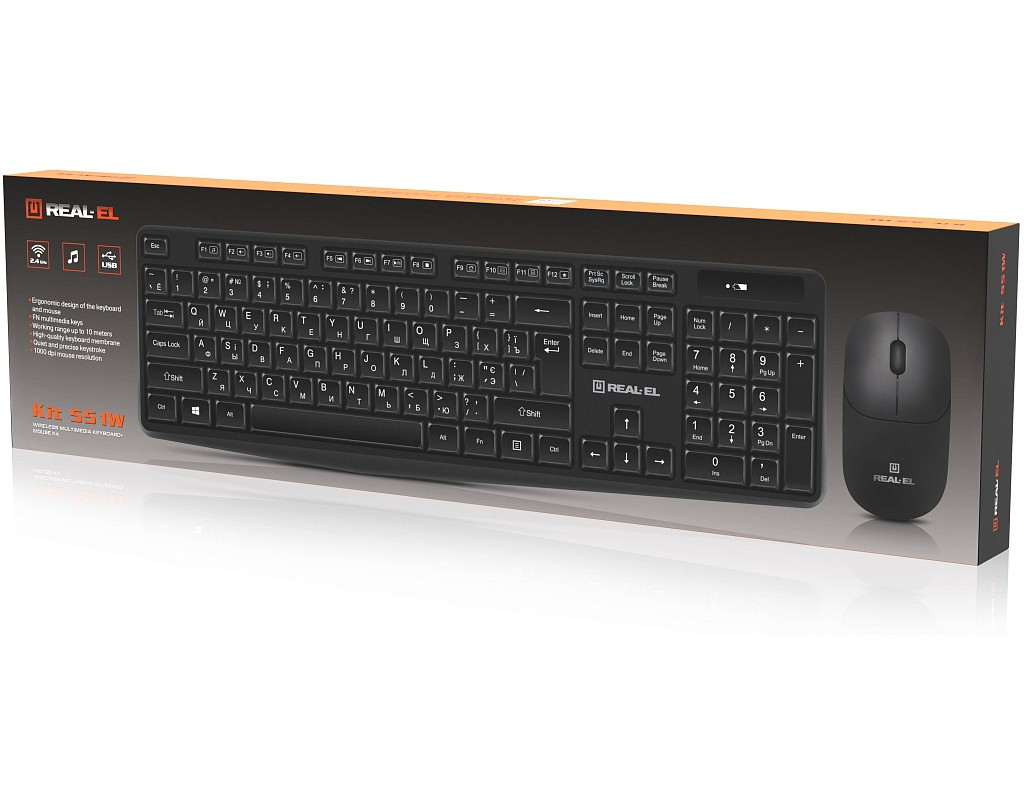REAL-EL Kit 551W — це стильний та зручний комплект, який створений для тих, хто цінує комфорт та сучасні технології. Клавіатура має тихий і чіткий хід клавіш, що дозволяє працювати без зайвого шуму, а її ергономічний дизайн забезпечує зручність навіть під час тривалої роботи. Оптична миша точно реагує на кожен рух, що робить її ідеальною для повсякденних завдань. Завдяки автоматичному підключенню комплект легко налаштовується і готовий до роботи за лічені секунди. Велика дальність дії дозволяє працювати вільно, а економне споживання енергії забезпечує тривалу роботу без заміни батарейок. Це надійне рішення для тих, хто шукає простоту, функціональність і стиль. |