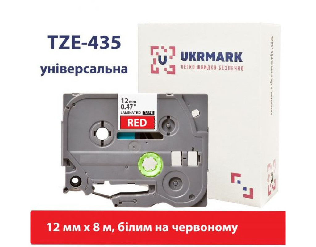Стрічка для принтера етикеток UKRMARK B-T435P Сумісна з BROTHER TZe-435 Тип картриджа: TZ Тип стрічки: ламінована самоклеюча стрічка Колір друку: білий Колір стрічки: червоний Ширина: 12 мм. Довжина: 8 м. Сумісна з принтерами: - UKRMARK RM910, E1000PRO - Brother P-touch Label Makers (GL-100, PT-1000, PT-1000BM, PT-1010, PT-1010B, PT-1010NB, PT-1010R, PT-1010S, PT-1090, PT-1090BK, PT-1100, PT1100SB, PT-1100SBVP, PT-1100ST, PT-1120, PT-1130, PT-1160, PT-1170, PT-1180, PT-1190, PT-1200, PT-1230PC, PT-1280, PT-1280SR, PT-1280VP, PT-128AF, PT-1290, PT-1290BT, PT-1290BT2, PT-1290RS, PT-1300, PT-1400, PT-1500, PT-1500PC, PT-1600, PT-1700, PT-1750, PT-1800, PT-1810, PT-1830, PT-1830C, PT-1830SC, PT-1830VP, PT-1880, PT-1880C, PT-1880SC, PT-1880W, PT-18R, PT-18RKT, PT-1900, PT-1910, PT-1950, PT-1960, PT-200, PT-2030, PT-2030AD, PT-2030VP, PT-2100, PT-2110, PT-2200, PT-2210, PT-2300, PT-2310, PT-2400, PT-2410, PT-2430PC, PT-2500PC, PT-2600, PT-2610, PT-2700, PT-2710, PT-2730, PT-2730VP, PT-300, PT-300B, PT-310, PT-310B, PT-320, PT-330, PT-340, PT-350, PT-3600, PT-4000, PT-520, PT-530, PT-540, PT-550, PT-580C, PT-6100, PT-7100, PT-7500, PT-9200DX, PT-9200PC, PT-9400, PT-9500PC, PT-9600, PT-9700PC, PT-9800PCN, PT-D200, PT-D200BT, PT-D200DA, PT-D200MA, PT-D200SA, PT-D210, PT-D400, PT-D400AD, PT-D400VP, PT-D450, PT-D600, PT-D600VP, PT-E100, PT-E300, PT-E500, PT-E550W, PT-H100, PT-H300, PT-H300LI, PT-H500LI, PT-P700, PT-P750W, PT-P750WVP, ST-1150, ST-1150DX, ST-5) |