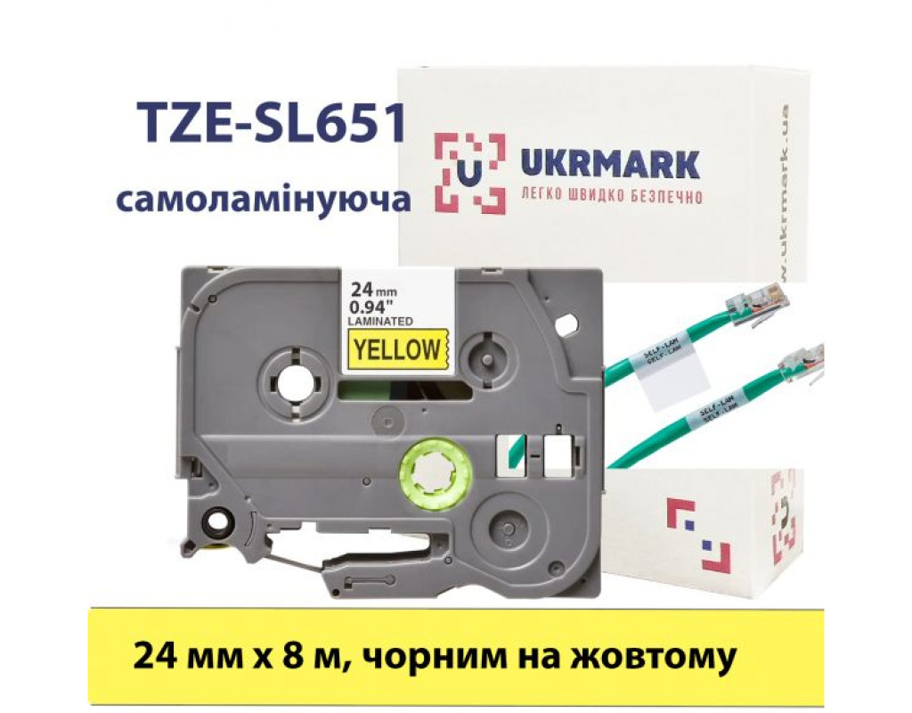 Стрічка для принтера етикеток UKRMARK B-SL-T651P Самоламінуюча Сумісна з BROTHER TZe-SL651 Тип картриджа: TZ Тип стрічки: Самоламінуюча Колір друку: чорний Колір стрічки: жовтий Ширина: 24 мм. Довжина: 8 м. Сумісна з принтерами Brother P-touch Label Makers (PT-1300, PT-1400, PT-1500, PT-1500PC, PT-1600, PT-1700, PT-1750, PT-1800, PT-1810, PT-1830, PT-1830C, PT-1830SC, PT-1830VP, PT-1880C, PT-1880SC, PT-1880W, PT-1890C, PT-1890SC, PT-1890W, PT-18R, PT-18RKT, PT-1900, PT-1910, PT-1950, PT-1960, PT-2030, PT-2030AD, PT-2030VP, PT-2100, PT-2110, PT-2200, PT-2210, PT-2300, PT-2310, PT-2400, PT-2410, PT-2430PC, PT-2500PC, PT-2600, PT-2610, PT-2700, PT-2710, PT-2730, PT-2730VP, PT-300, PT-300B, PT-310, PT-310B, PT-320, PT-330, PT-340, PT-350, PT-3600, PT-4000, PT-520, PT-530, PT-540, PT-550, PT-580C, PT-7500, PT-7600, PT-9200DX, PT-9200PC, PT-9400, PT-9500PC, PT-9600, PT-9700PC, PT-9800PCN, PT-D400, PT-D400AD, PT-D400VP, PT-D450, PT-D600, PT-D600VP, PT-D800W, PT-E300, PT-E500, PT-E550W, PT-E800W, PT-H300, PT-H300LI, PT-H500LI, PT-P700, PT-P750W, PT-P750WVP, PT-P900, PT-P900W, PT-P950NW, ST-1150, ST-1150DX, ST-5) |