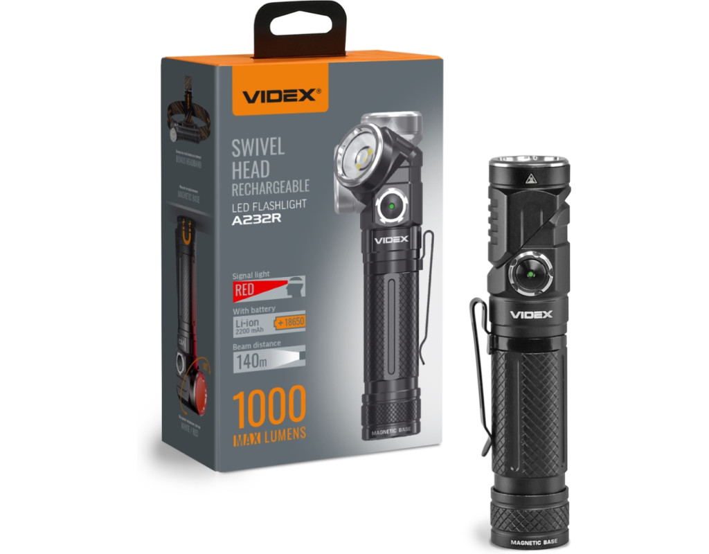 Ліхтар VIDEX VLF-A232R — це надійний, компактний та потужний пристрій, який стане чудовим помічником у темний час доби або в умовах недостатнього освітлення. Завдяки яскравому світловому потоку потужністю 1000 люмен та нейтральному білому світлу з температурою 5000K, цей ліхтар забезпечує комфортне освітлення для виконання будь-яких завдань. Основні характеристики: