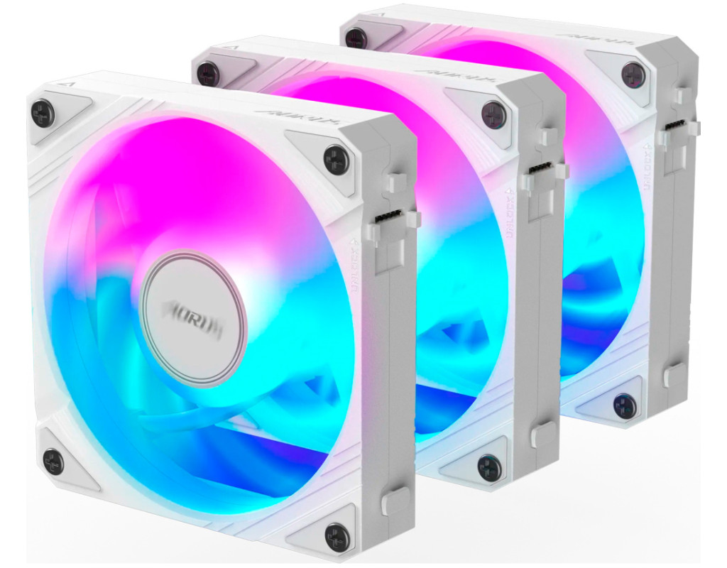 Gigabyte Aorus EZ Chain Fan 120 Ice (3 шт) + EZ-ланцюжок для вентилятора: зручна для збирання конструкція вентилятора із засувним механізмом блокування та ланцюжком Daisy-Chain.