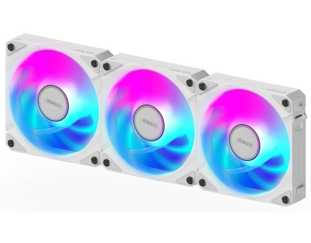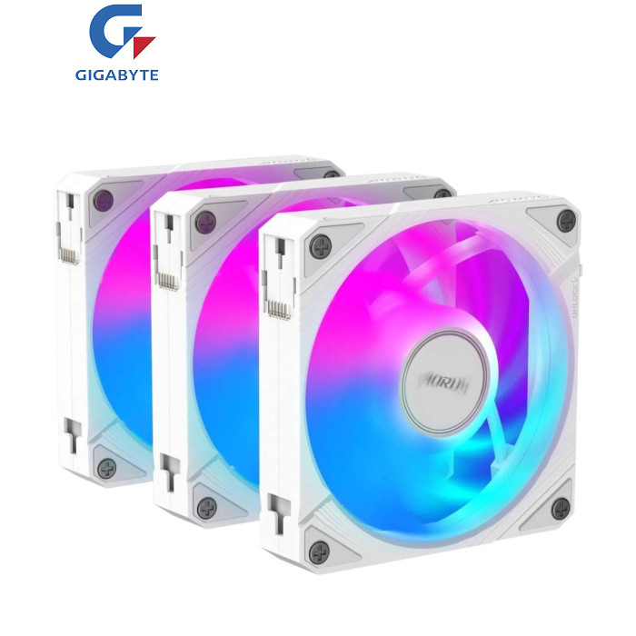| Gigabyte Aorus EZ Chain Fan 120 Ice (3 шт) + EZ-ланцюжок для вентилятора: зручна для складання вентиляторна конструкція із засувним механізмом блокування та ланцюжком Daisy-Chain.