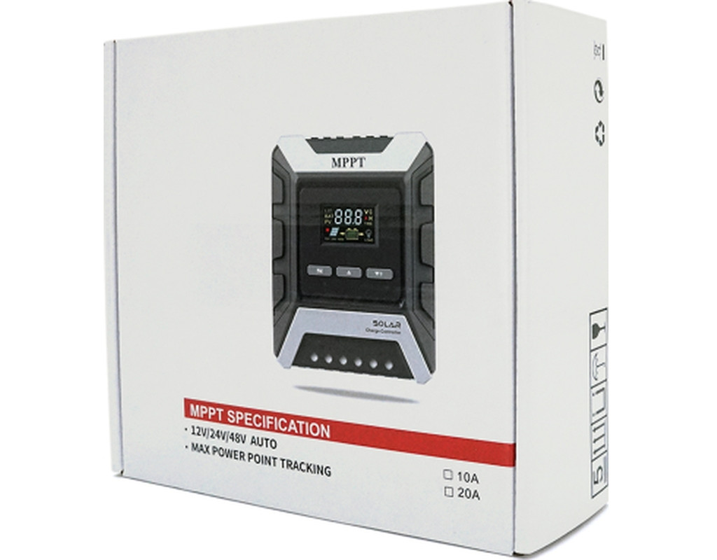 Макс. струм заряду - 10 A, Тип контролера - MPPT, Напруга АКБ - 12/24/48 В, Максимальна напруга сонячних панелей - 70 В, Wmax сонячної батареї - 960 Вт, Imax навантаження - 10 A