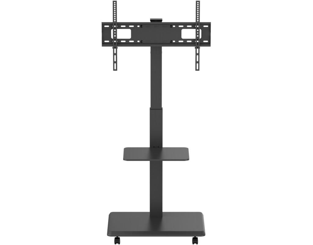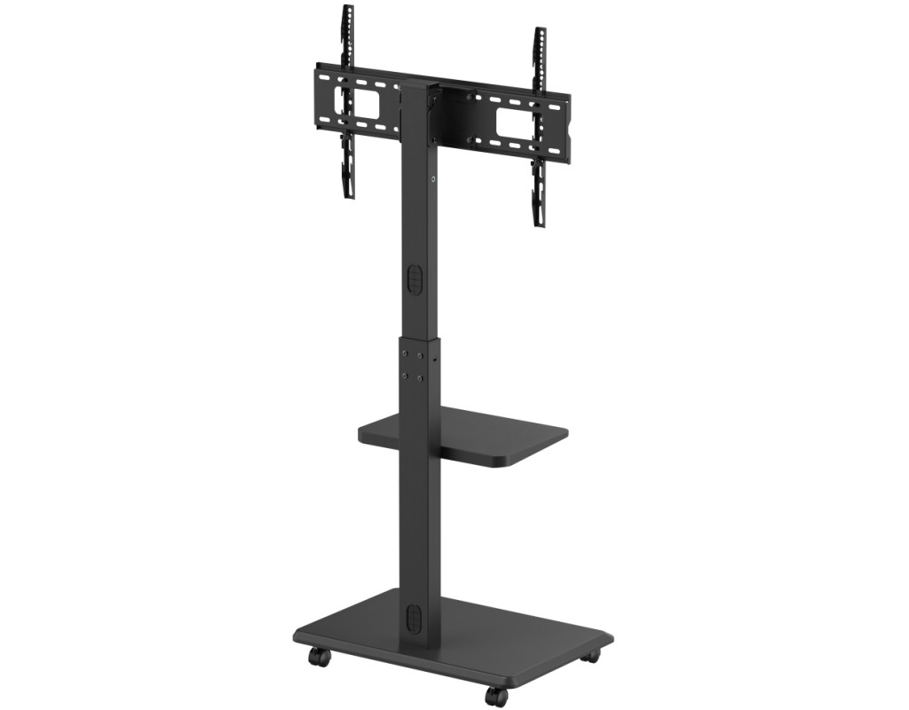 Стійка з кріпленням для телевізора OfficePro TVS302B забезпечує оптимізацію перегляду та зберігання для телевізорів розміром від 37 до 75 дюймів. Ця стійка вирізняється своєю стабільністю, мобільністю, можливістю регулювання висоти та кута нахилу, а також функціональною полицею для обладнання. Крім того, в конструкції реалізовано систему організації кабелів та обладнано надійними колесами з блокуванням.