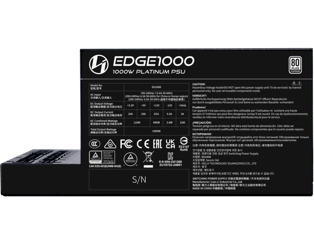 | Блок живлення Lian Li 1000W EDGE1000 (G9P.EG1000.BE00.EU) — це оптимальний вибір для тих, хто цінує поєднання високих технологій та компонентів преміальної якості. Цей блок живлення представленої потужності в 1000 Вт здатний задовольнити всі енергетичні потреби сучасних комп'ютерних систем, навіть найвибагливіших до ресурсів. Його модульне підключення кабелів у форматі Full значно полегшує прокладання проводки всередині корпусу, звільняючи додатковий простір для ефективного охолодження. Це рішення не лише забезпечує відсутність хаосу з кабелями, але й дозволяє підлаштуватися під індивідуальні потреби кожного користувача. Блок живлення відповідає стандарту ATX та має сертифікацію 80 PLUS Platinum, що гарантує високий рівень ефективності — до 92% при половинному навантаженні. Це означає не лише економію на електроспоживанні, але й менше нагрівання системи, що, у свою чергу, зменшує знос компонентів та збільшує їх термін служби. Активний модуль PFC сприяє стабільній роботі, знижуючи ризики збоїв при коливаннях напруги. Щодо підключення до основних компонентів, Lian Li 1000W EDGE1000 пропонує велику кількість інтерфейсів: роз'єм 20+4 pin для материнської плати, два 8-pin (2x4+4) роз'єми для живлення процесора та п'ять роз'ємів для новітніх відеокарт. Зокрема, це 4 роз'єми 6+2 pin і 1 роз'єм 12VHPWR, що відповідає потребам потужних графічних карт. Додаткові 12 роз'ємів SATA забезпечують підключення накопичувачів, а 4 периферійні роз'єми дозволяють підключити інші компоненти. Компактні розміри блоку — 182 x 150 x 86 мм — дозволяють легко інтегрувати його у більшість системних корпусів, а 120-міліметровий вентилятор забезпечує ефективне охолодження зі зниженим рівнем шуму. Все це робить його ідеальним рішенням для тих, хто шукає баланс між потужністю та тишею. Продукція Lian Li славиться своєю надійністю, тож EDGE1000 стане довговічним партнером у вашій комп'ютерній системі, здатною витримувати важкі виклики будь-якого роду — від інтенсивних робочих навантажень до найвимогливіших ігор та мультимедійних завдань. Обираючи Lian Li, ви отримуєте не просто блок живлення, а інноваційне рішення, що дозволяє вашій системі працювати на межі можливостей. |