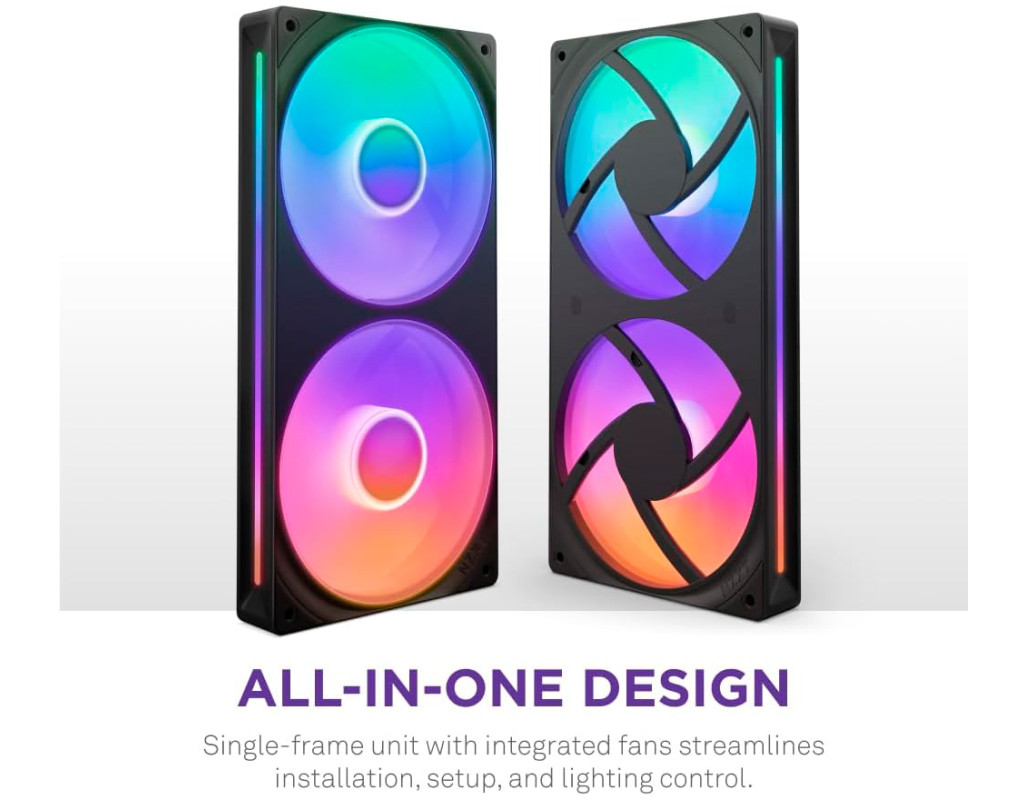 NZXT F240 RGB Core — надійний кулер для корпуса, призначений для охолодження компонентів ПК. Вентилятори RGB серії F забезпечують чудове освітлення завдяки восьми світлодіодам RGB з окремою адресацією та преміальне охолодження з високим статичним тиском. Удосконалена конструкція втулки та лопатей забезпечує підвищений статичний тиск, проштовхуючи повітря через радіатор, одночасно забезпечуючи чудовий потік. ШІМ-керований вентилятор дозволяє регулювати швидкість, щоб ви отримали найкраще охолодження. Підшипник Fluid Dynamic гарантує високу стабільність обертання, одночасно зменшуючи шум і збільшуючи термін служби вентилятора до 60 000 годин. Антивібраційні гумові куточки гасять вібраційний шум на будь-якій швидкості. |