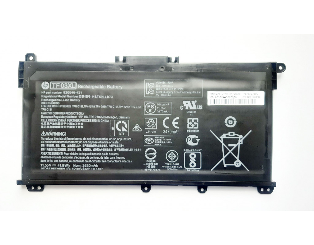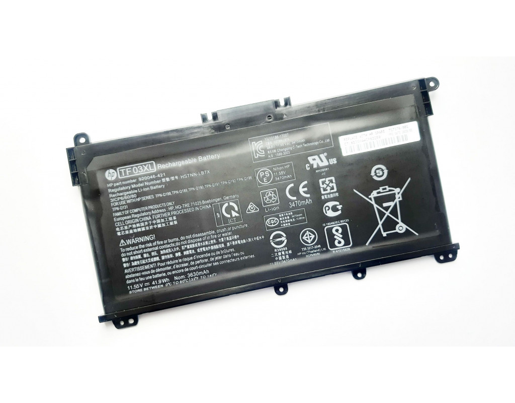 Дана акумуляторна батарея може мати такі маркування (або PartNumber): TF03XL, HSTNN-IB7Y, HSTNN-UB7J, 920046-121, TPN-Q188, TPN-Q189, TPN-Q190, TPN-Q191, TPN-Q192, TPN-Q196 Акумуляторна батарея підходить для наступних моделей ноутбуків: моделэн У зв'язку з динамічно розвиваючимися технологіями і регулярно оновлюваними лінійками ноутбуків, всі вищевказані списки можуть бути не повними. |