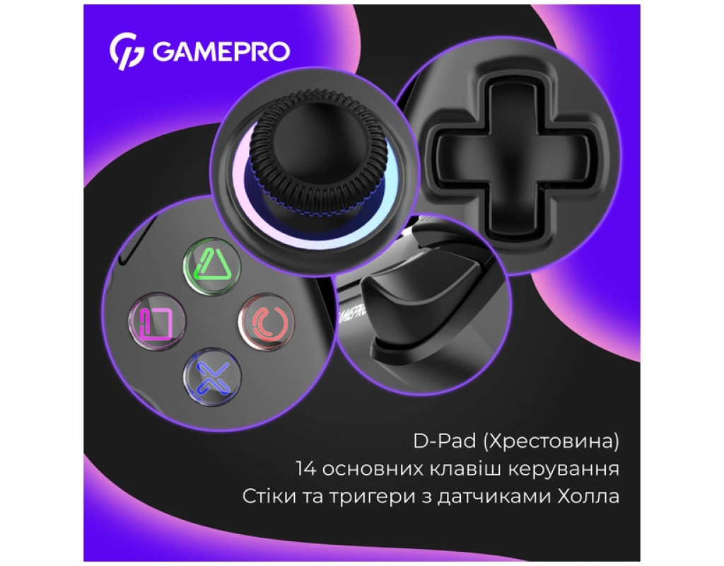 Геймпад GamePro GPS13B BT 5.3/USB/PC/iOS/Android/PS3/PS4 RGB Black (GPS13B)