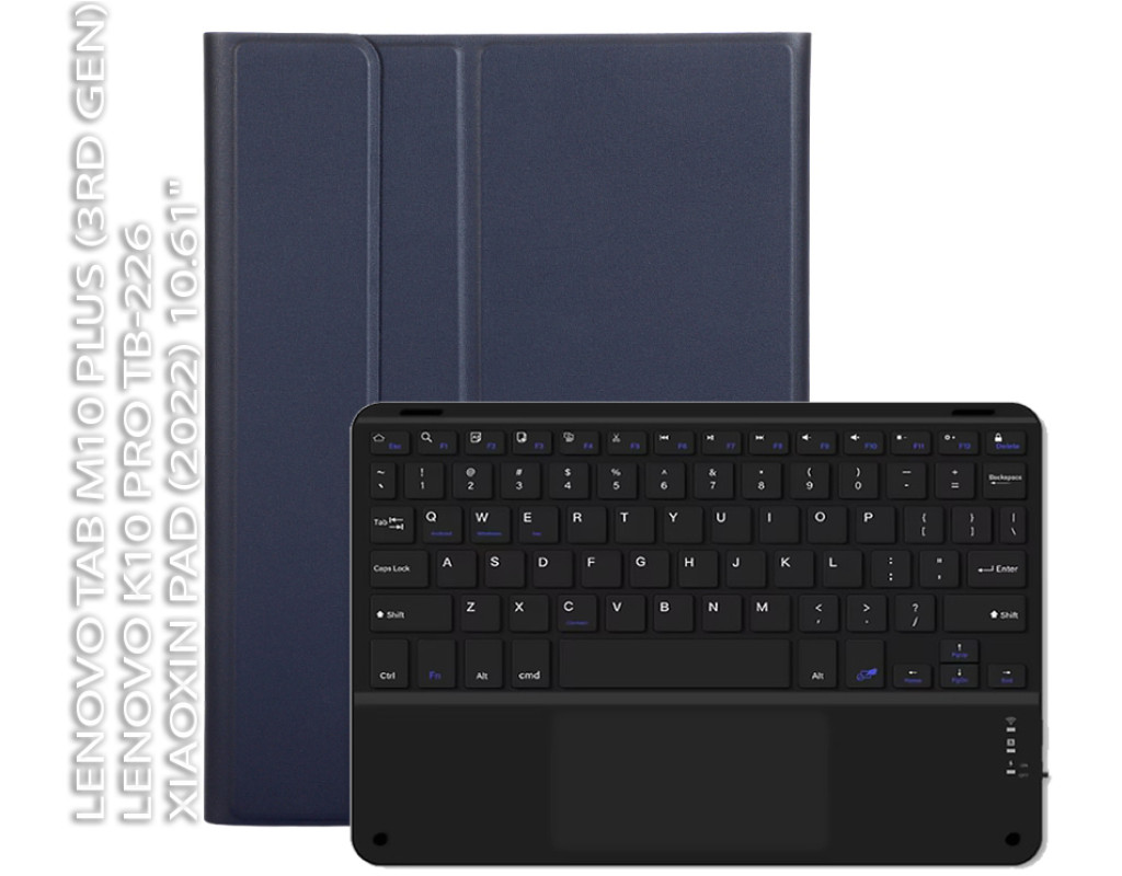 Тип - чохол-клавіатура, Сумісність з моделями - Lenovo Tab M10 Plus, Xiaoxin Pad (2022), діагональ - 10.61, Спосіб кріплення - обкладинка, спосіб закриття - магніт, Матеріал - поліуретан, термополиуретан, темно-синій