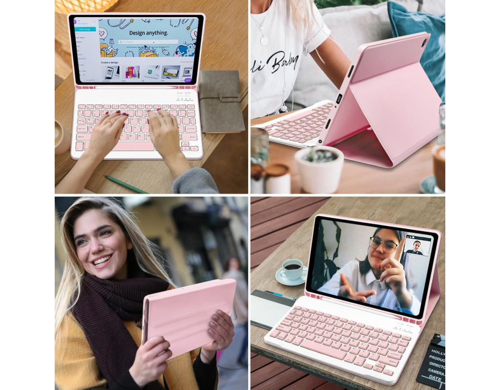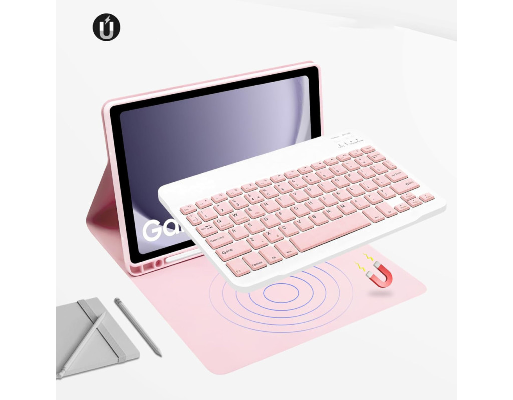 Тип - чохол-клавіатура, Сумісність з моделями - Samsung Galaxy Tab A9, діагональ - 8.7, Спосіб кріплення - обкладинка, спосіб закриття - магніт, Матеріал - поліуретан, термополиуретан, рожевий