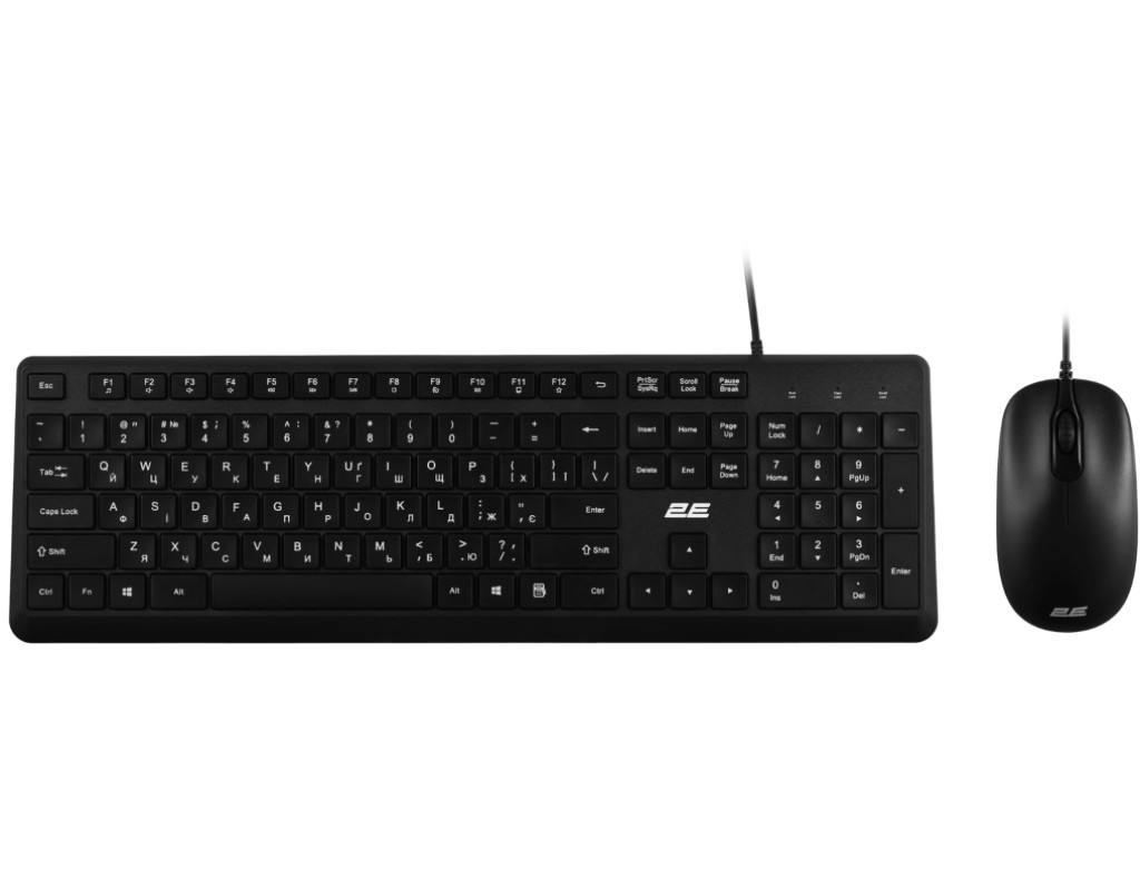 - Мембранна клавіатура з цифровим блоком (106 клавіш із ресурсом 10 млн натискань). - Симетрична миша з прогумованим коліщатком (три кнопки, DPI 1200). - Інтерфейс підключення USB-A. - технологія Plug and Play. - Сумісність Windows 10/7 та старші версії, Linux, macOS. |