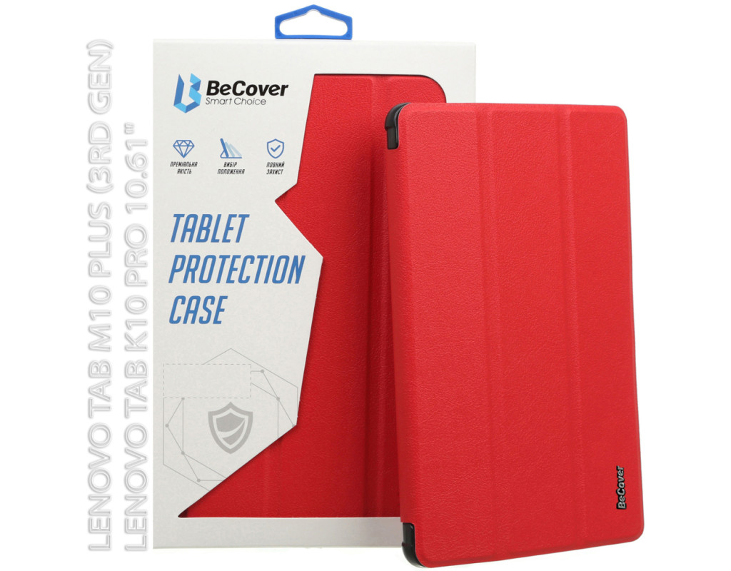Тип - обкладинка, Сумісність з моделями - Lenovo Tab M10 Plus, діагональ - 10.61, Спосіб кріплення - обкладинка, спосіб закриття - магніт, Матеріал - поліуретан, червоний