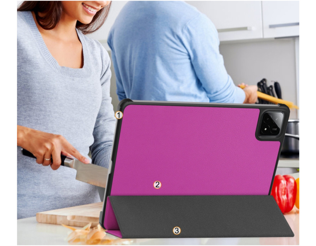 Тип - обкладинка, Сумісність з моделями - Xiaomi Pad 7, Xiaomi Pad 7 Pro, діагональ - 11.2, Спосіб кріплення - обкладинка, спосіб закриття - магніт, Матеріал - поліуретан, пурпурний