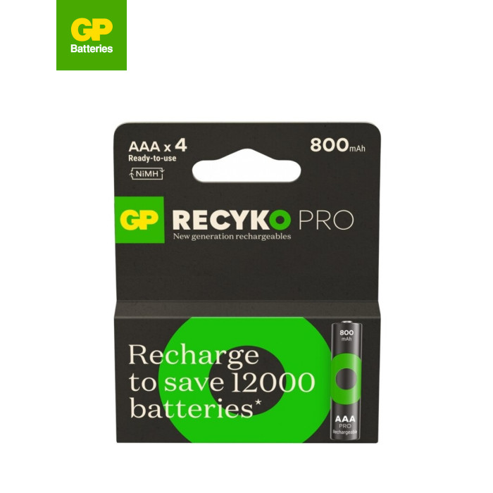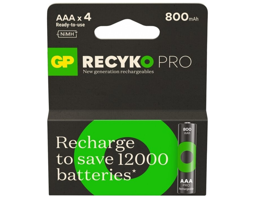 | Акумулятор GP Recyko Pro (New Generation Eco Rechargables) 800mAh, GP85AAAHCBR21-2TLB4, Ni-MH AAA, 1.2V, button top, нова еко серія, картонний еко бокс 4шт.