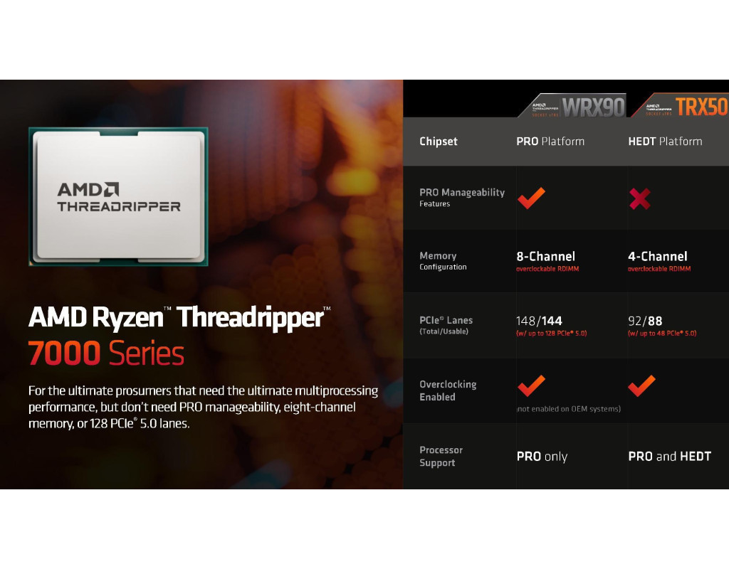 TR5, 32 ядра, 64 потоки, 4.0 GHz, 5.3 GHz, Максимальний TDP - 350 Вт, 5nm, L1: 2MB, L2: 32MB, L3: 128MB, немає, AMD Zen 4, BOX без кулера