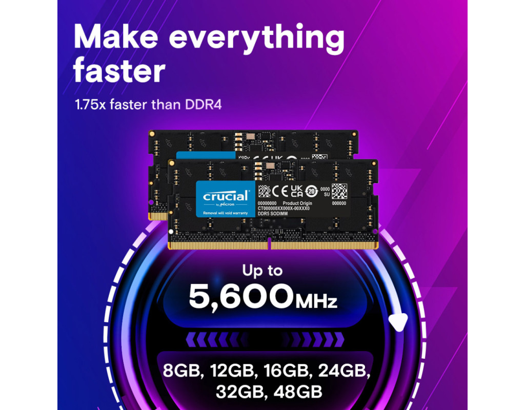 Crucial DDR5 — оперативна пам'ять типу DDR5 місткістю 8 ГБ. Підходить для встановлення у системи, яким потрібна висока швидкодія та можливість вирішення справ у багатозадачному режимі. Модель оптимізовано для підвищення продуктивності роботи навіть у режимі багатозадачності. Це один із найважливіших компонентів, який забезпечує швидкість обробки даних у комп'ютерній системі. Розроблена з вбудованою технологією ECC (ODECC) на рівні компонентів для довгострокової стабільності, Для підвищення ефективності та стабільності в Crucial DDR5 реалізовано регулювання напруги на модулі за допомогою інтегральної схеми керування живленням (PMIC). Це призводить до покращеної сигналізації та чистішого живлення для модулів (DIMM). |