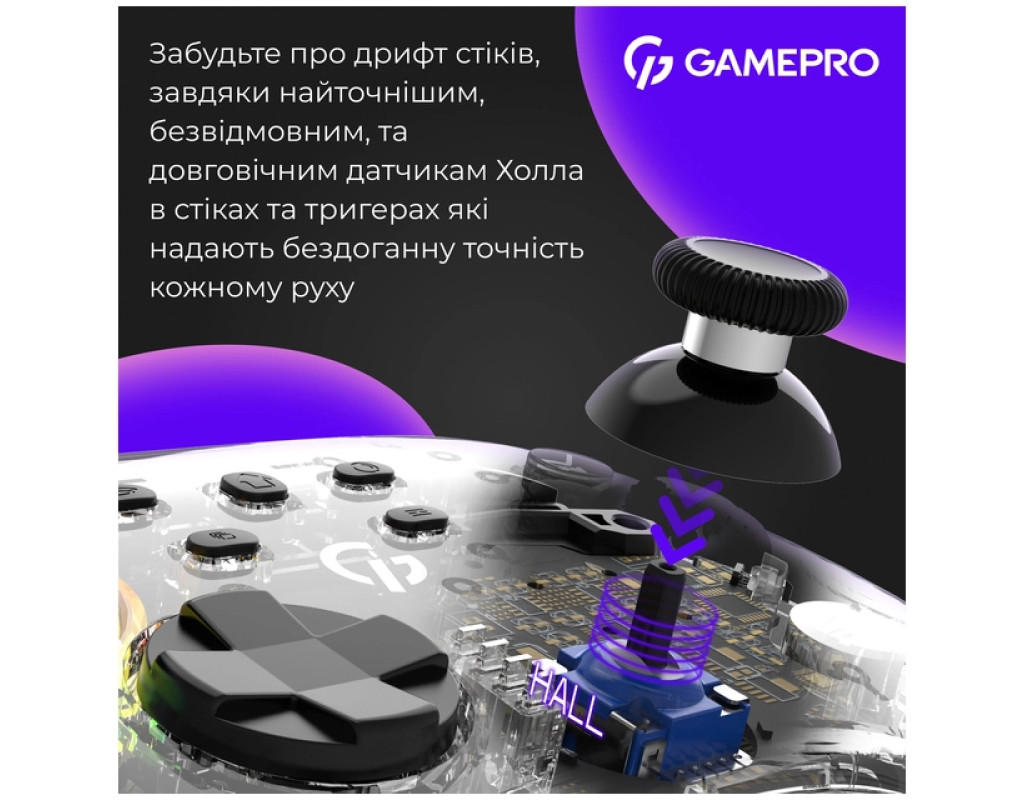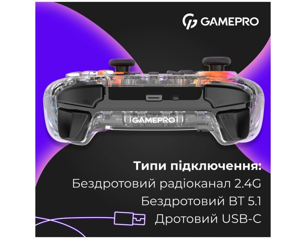 Геймпад GamePro GPX13T 2.4G/BT 5.1/USB/PC/iOS/Android RGB Transparent (GPX13T)