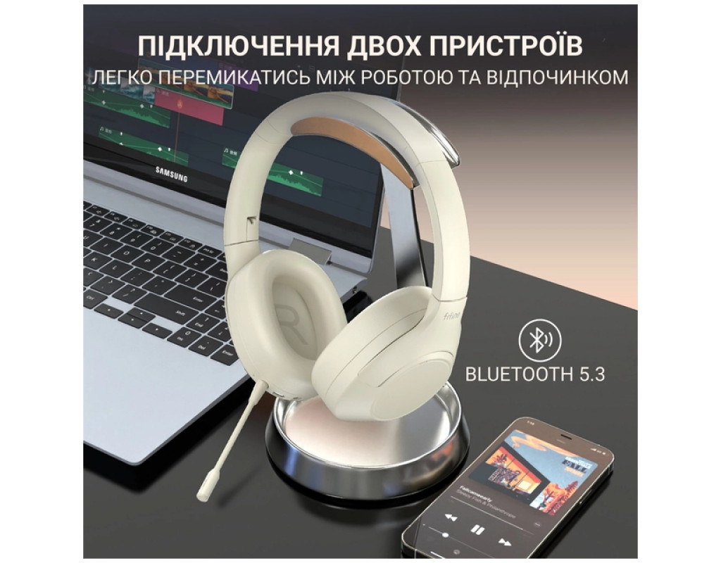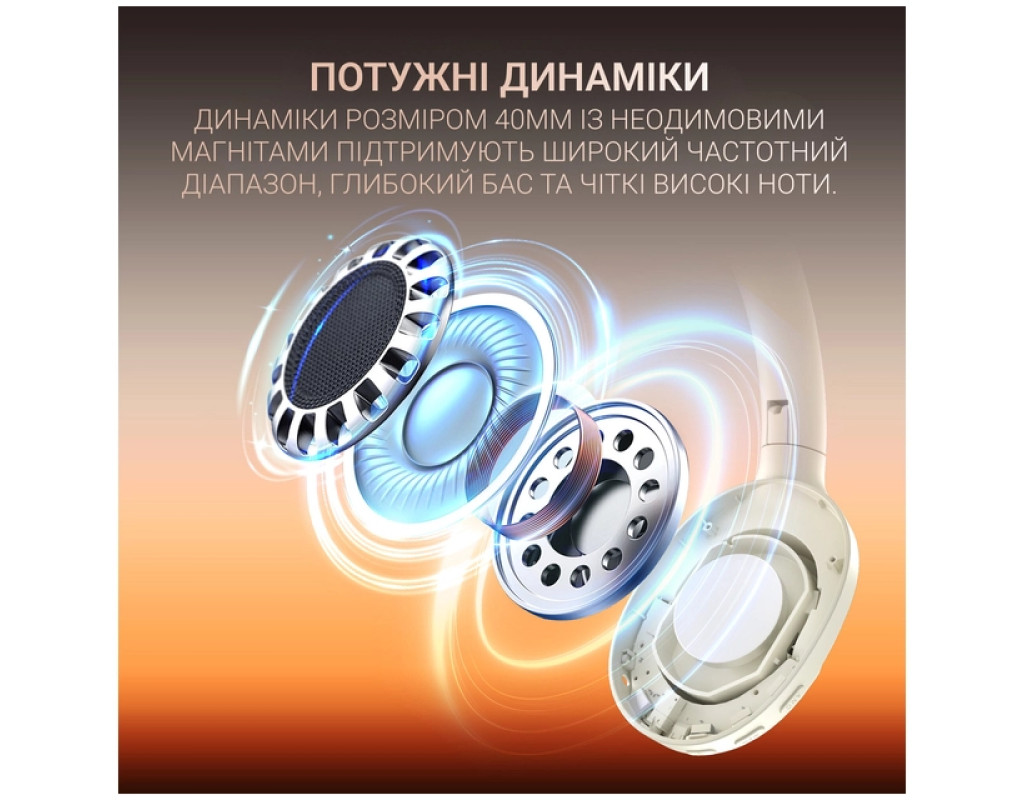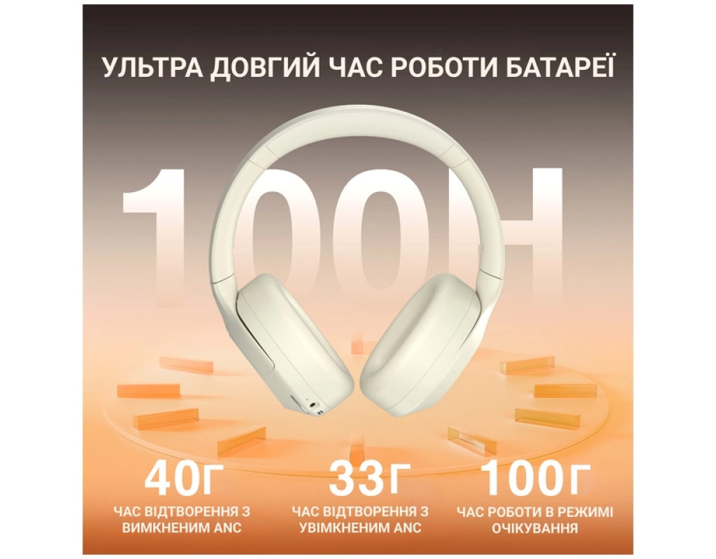 бездротове, Bluetooth, закриті, 32 Ом, чутливість - 100 дБ, 100 - 18000 Гц, тип випромінювача - динамічний, з мікрофоном, Спрямованість мікрофона - всеспрямований, Версія Bluetooth - 5.3, до 80 год, довжина шнура - 1.8 м, Beige, 298 г