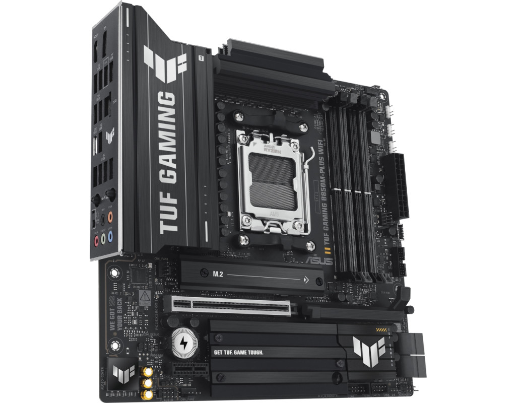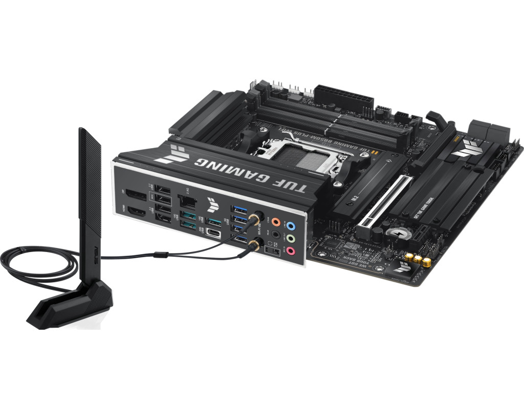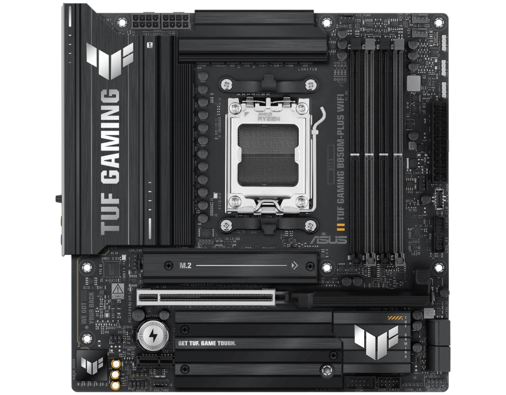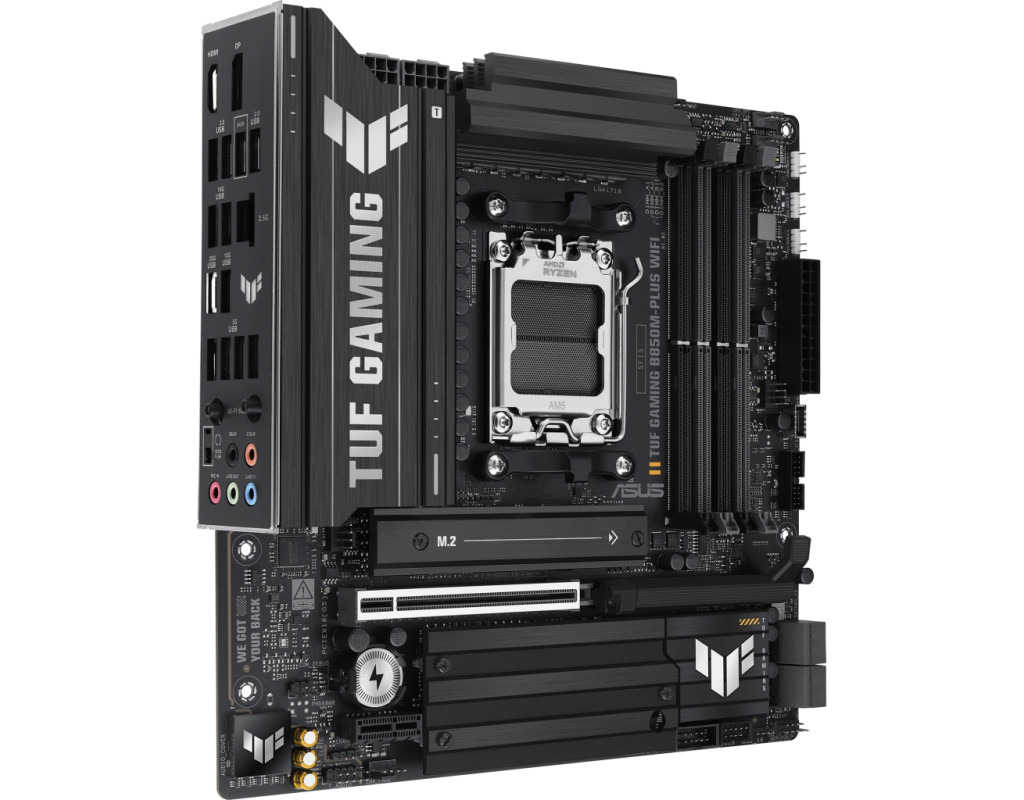 | Материнська плата ASUS TUF GAMING B850M-PLUS WIFI стане відмінним вибором як для професійних геймерів, так і для ентузіастів, які прагнуть вичавити максимум з можливостей свого ПК. Вона об'єднує в собі найновіші інновації, потужність сучасних процесорів AMD Ryzen та унікальні геймерські функції, що виділяють її серед конкурентів. Компоненти військового класу, які використано при виготовленні підвищують якість і довговічність плати, що дозволяє їй витримувати навіть найбільш вимогливі умови експлуатації. Серед ключових переваг цієї материнської плати відзначається просунута система живлення із 2 x 8-pin +12V Power і 1 x 24-pin Main Power конекторами. Це гарантує стабільну подачу енергії навіть під час найінтенсивніших процесів. Ця особливість забезпечує злагоджену роботу системи без зниження продуктивності під навантаженням, що критично для геймерських сесій і багатозадачної роботи. Чіпсет AMD B850 є основою для цієї материнської плати, який вражає своїм поєднанням потужності та гнучкості. DDR5 оперативна пам'ять, підтримувана платою, має максимальну частоту до 8000 MHz, що забезпечує виняткову швидкість обміну даними і дає можливість ефективно працювати з важкими додатками та сучасними іграми. З 4 роз'ємами для ОЗУ загальний обсяг пам'яті може досягати 192 ГБ, дозволяючи працювати в двоканальному режимі для покращення продуктивності. Материнська плата забезпечує широку підтримку компонентів завдяки інтерфейсам PCI Express x16 і PCI Express x1, що дозволяє підключити актуальні графічні карти та інше обладнання. Крім цього, наявність технології USB 3.2 дозволяє передавати великі обсяги даних на високих швидкостях, що є важливим для підключення сучасних пристроїв та аксесуарів. Для візуальних виходів, материнська плата оснащена HDMI і DisplayPort, які забезпечують чудову якість зображення на моніторах і телевізорах. Інклюзія цих портів гарантує, що ви зможете насолоджуватися мультимедійним контентом з високою роздільною здатністю та чіткістю. Безперечна перевага ASUS TUF GAMING B850M-PLUS WIFI полягає в сучасних бездротових рішеннях — підтримка Wi-Fi 6E і Bluetooth 5.3 забезпечує швидке і стабільне підключення до різних пристроїв і мереж. Це дозволяє насолоджуватися всіма можливостями онлайн-ігор та мультимедіа без затримок. Доповнює картину високошвидкісний мережевий порт Realtek 2.5GbE, що підтримує швидкість передачі до 2,5 Гбіт/с. Що стосується зовнішньої підключеності, материнська плата може похвалитися великою кількістю портів: 1 USB 20Gbps порт (USB Type-C), 4 USB 2.0, 4 USB 5Gbps (Type-A) та 3 USB 10Gbps для різноманітного підключення. Аудіоконтролер Realtek ALC1220P додатково увиразнює звукову палітру і здатний відтворювати чіткий і насичений звук, що додасть ефекту присутності в іграх та фільмах. З точки зору зберігання даних, ASUS TUF GAMING B850M-PLUS WIFI пропонує 3 роз'єми M.2 2280 і 4 SATA 6.0 Gb/s порти, що надають можливість створити надійну і швидку систему зберігання з використанням як твердотільних накопичувачів, так і традиційних жорстких дисків. Підтримка RAID (10, 5, 1, 0) гарантує надійність та швидкість у разі потреби у комплексних системах зберігання. У форм-факторі Micro-ATX, ця плата добре підходить до різних корпусів, що дозволяє налаштувати систему з максимальною ефективністю простору. Програмна сумісність з Windows 11 забезпечує користувачів доступом до всіх нових технологій і функцій, що пропонує остання версія операційної системи від Microsoft. Під