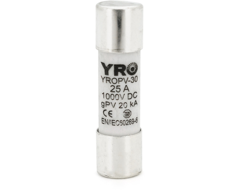 | Плавкий предохранитель YROPV-30 25A призначений для захисту від перевантажень і коротких замикань в електричних цепях. Він має номінальний ток 20A і номінальне постійне напруга 1000Vdc. Розміри предохранителя становлять 10×38 мм. Характеристики: - Модель: YROPV-30 - Номінальний ток: 25А - Номінальна постійна напруга: 1000 В постійного струму - Розміри: 10×38 мм |