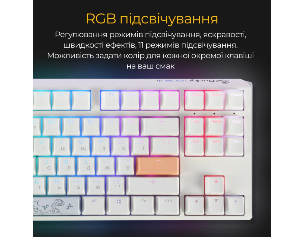Ducky One 3 — це не просто клавіатура, а інструмент для тих, хто прагне максимального комфорту та унікальності у своєму робочому просторі. Це елемент вашої особистості, що підкреслює вашу індивідуальність.