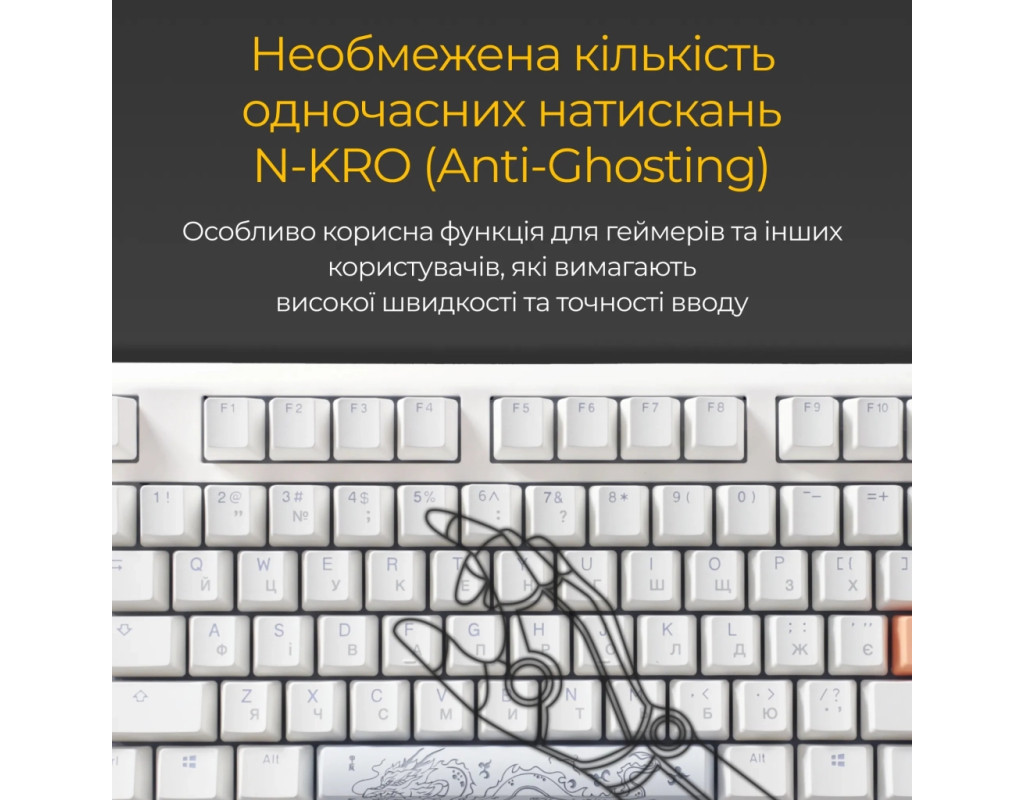 • NKRO технологія: Підтримка No Key Rollover забезпечує точність натискань навіть при одночасному натисканні кількох клавіш.
