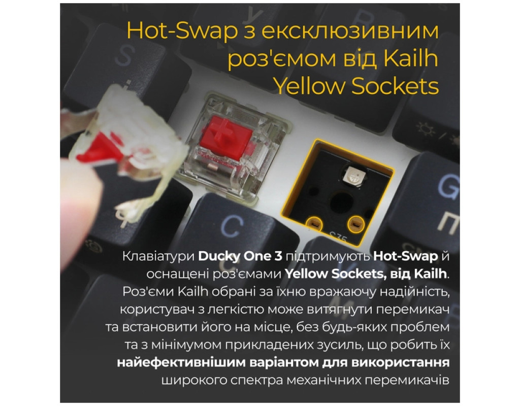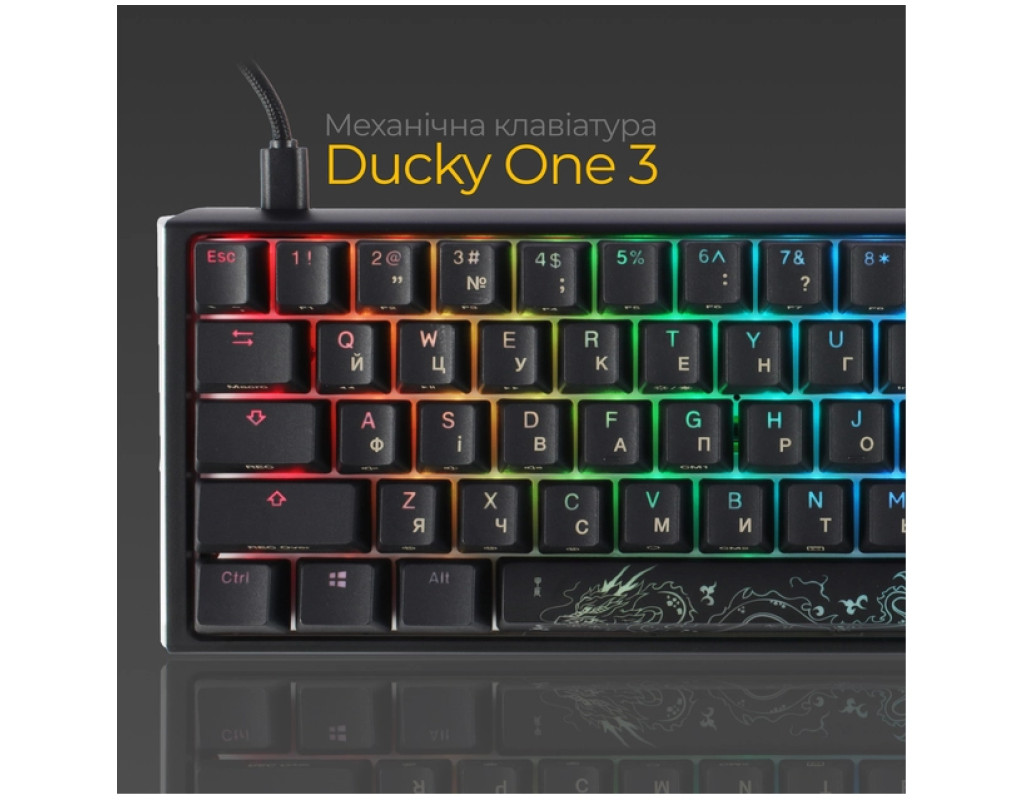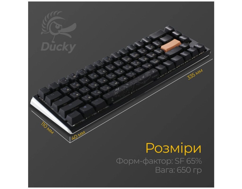 | Клавіатура Ducky One 3 SF Cherry MX Brown RGB UA USB Black (DKON2167ST-BUAPXCLAWSC1) — це не просто технічний пристрій, а витвір, що поєднує в собі сучасні технології та витончені дизайнерські рішення. Ідеально підходить для тих, хто цінує високу якість, універсальність і комфорт. Ця клавіатура стане незамінним інструментом як для роботи, так і для ігор. Клавіатуру обладнано тактильними механічними перемикачами Cherry MX Brown, що славляться своєю оптимальною чутливістю. Вони пропонують тиху роботу, без компромісів щодо відчуття натискання, роблячи її ідеальною для обробки тексту та програмування. Особливістю цієї моделі є Hot-Swap технологія Kailh. Вона дозволяє користувачам легко замінювати перемикачі без потреби в пайці, адаптуючи клавіатуру під індивідуальні вподобання. Це пропонує безмежні варіанти кастомізації вашого робочого простору. Естетично привабливе RGB підсвічування надає можливість налаштування кольорів і яскравості. За допомогою програмованих макросів створюється унікальна атмосфера, що підкреслить ваш стиль та індивідуальність. Лазерне гравіювання на міцних PBT клавішах забезпечує довговічність та чіткість символів як української, так і англійської розкладок. Кожна деталь у конструкції цієї клавіатури розроблена згідно з Ducky QUACK Mechanics — філософією, що зосереджена на естетиці та функціональності. Змащені стабілізатори V2 забезпечують м'який та безшумний хід клавіш, що сприяє максимальному комфорту навіть під час багатогодинного використання. Завдяки шумо-вібро поглинальному силіконовому гелю Q-Bounce та шумопоглинальній піні EVA, кожне натискання клавіші супроводжується приємно приглушеним звуком. Знімний обплетений кабель USB-A/USB-C завдовжки 1.8 метра дозволяє зручно підключити клавіатуру, а два рівні ніжок допоможуть вам підібрати ідеальний кут нахилу. Клавіатура є повністю сумісною з Windows і Linux, що робить її універсальним рішенням для будь-якої системи. У комплекті до Ducky One 3 SF входять пуллер для кейкапів та перемикачів, інструкція з експлуатації та додатковий набір кейкапів для персоналізації. Вибравши цю клавіатуру, ви отримуєте не лише продукт високої якості, але і значний елемент вашого життєвого простору, що підкреслює індивідуальність та стиль. |