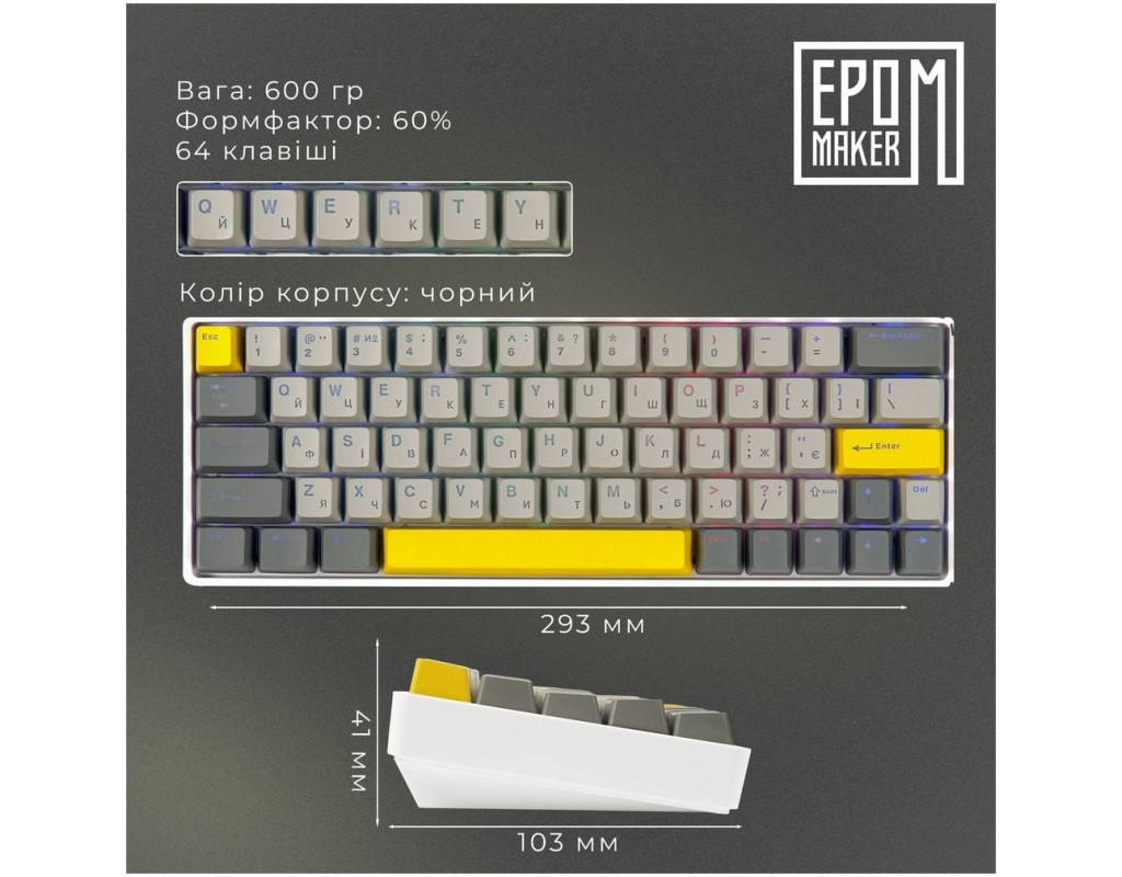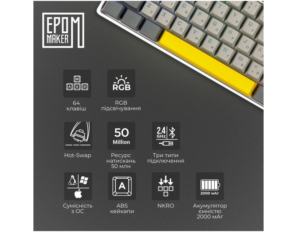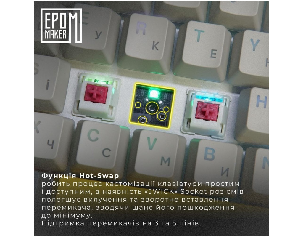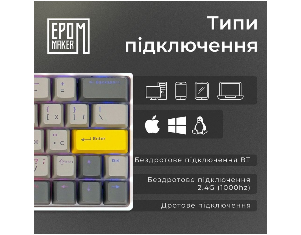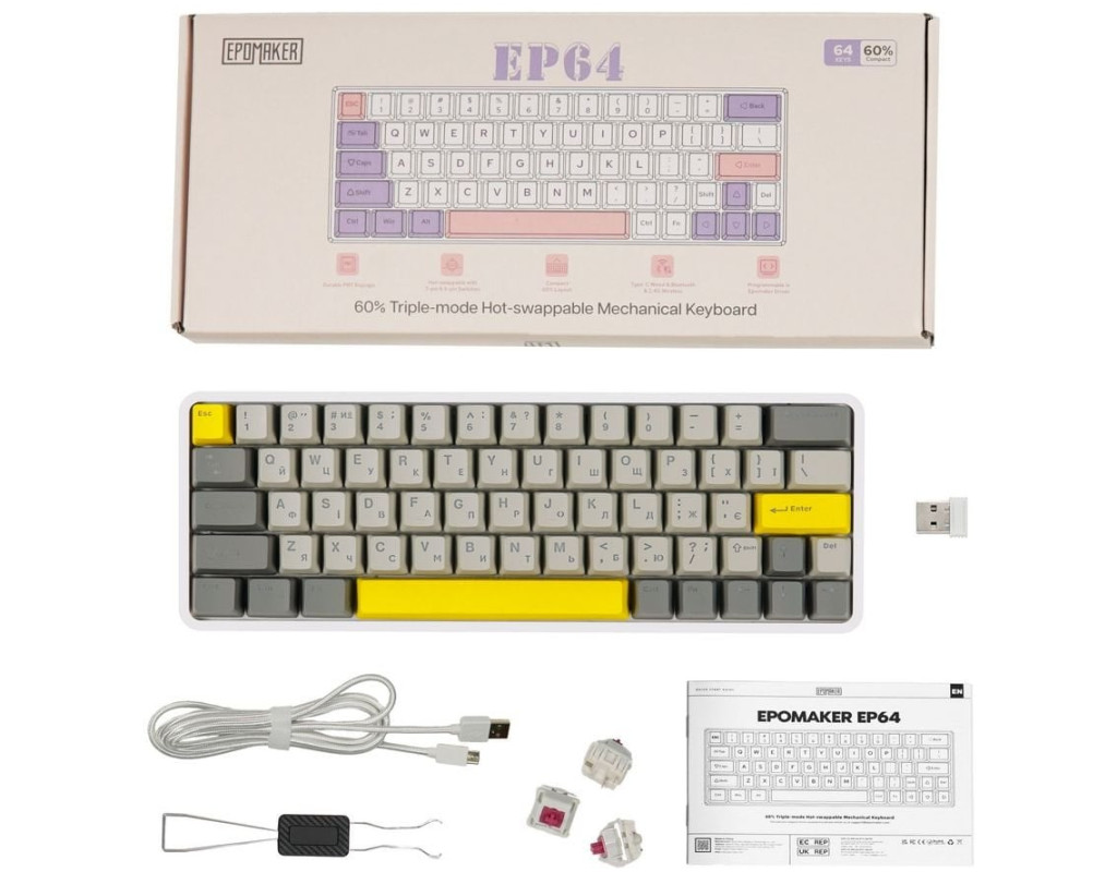 Бездротова механічна клавіатура EPOMAKER EP64, це клавіатура, яка об'єднує в собі найкращі технології для зручності та продуктивності. Завдяки технології Hot-Swap з Socket, ви можете легко замінювати перемикачі без пайки, налаштовуючи клавіатуру під свої уподобання.