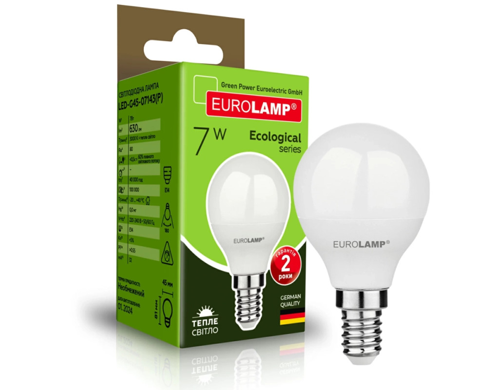 LED лампа Eurolamp ECO серія "P" G45 7W E14 3000K - це відмінне поєднання енергоефективності, довговічності та естетичного дизайну. З її допомогою ви зможете створити комфортне та затишне освітлення, яке підійде для різних інтер'єрів та освітлювальних приладів, забезпечуючи високу якість світла та економію енергії. Особливості: